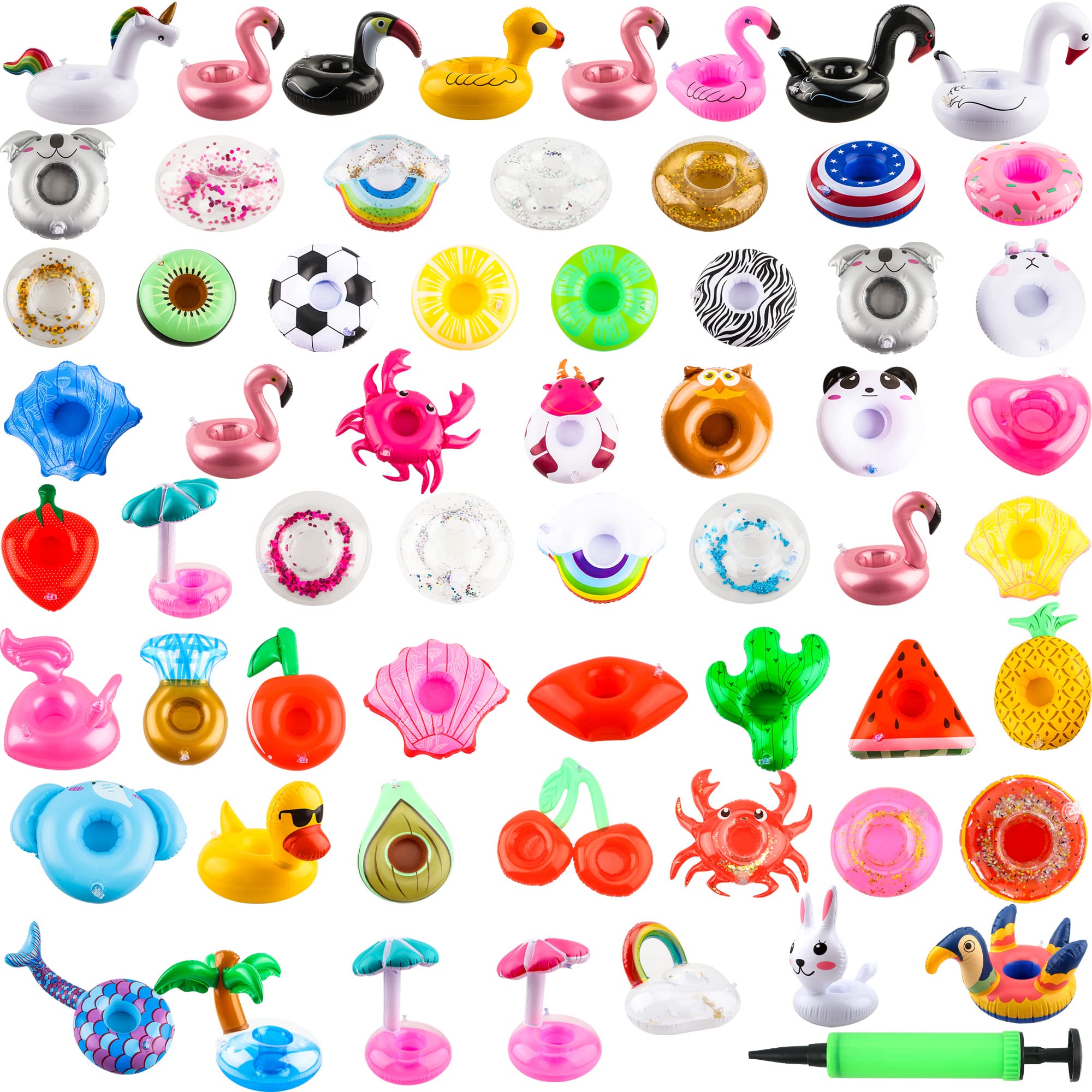 Paquete de 60 soportes inflables para bebidas para piscina, portavasos inflables con bomba de aire para piscina, playa, suministro