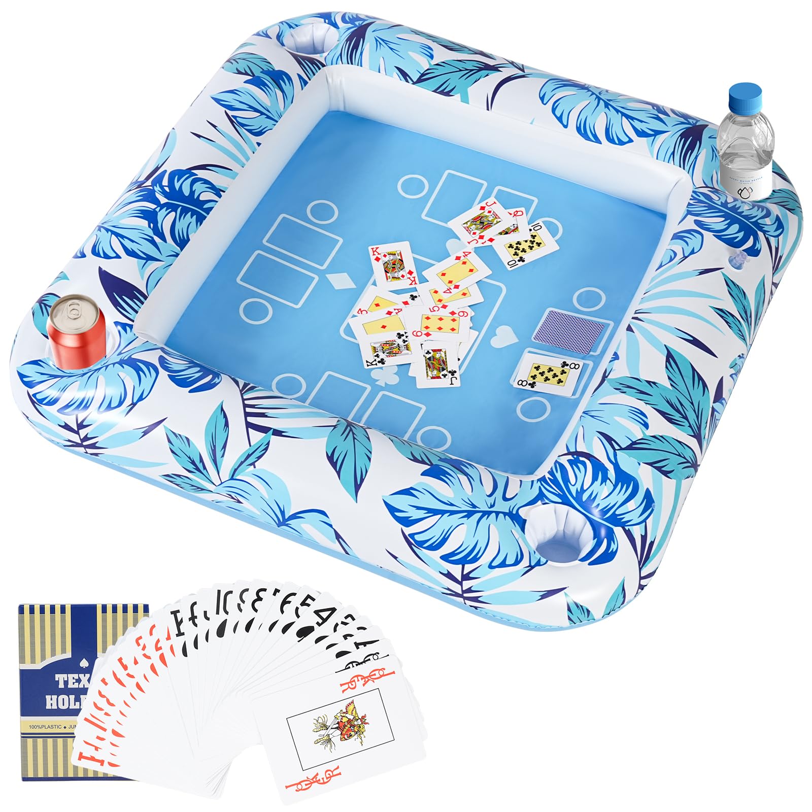 Mesa de juego inflable con naipes impermeables, mesa flotante de piscina con soportes para bebidas para fiesta en la piscina, dive