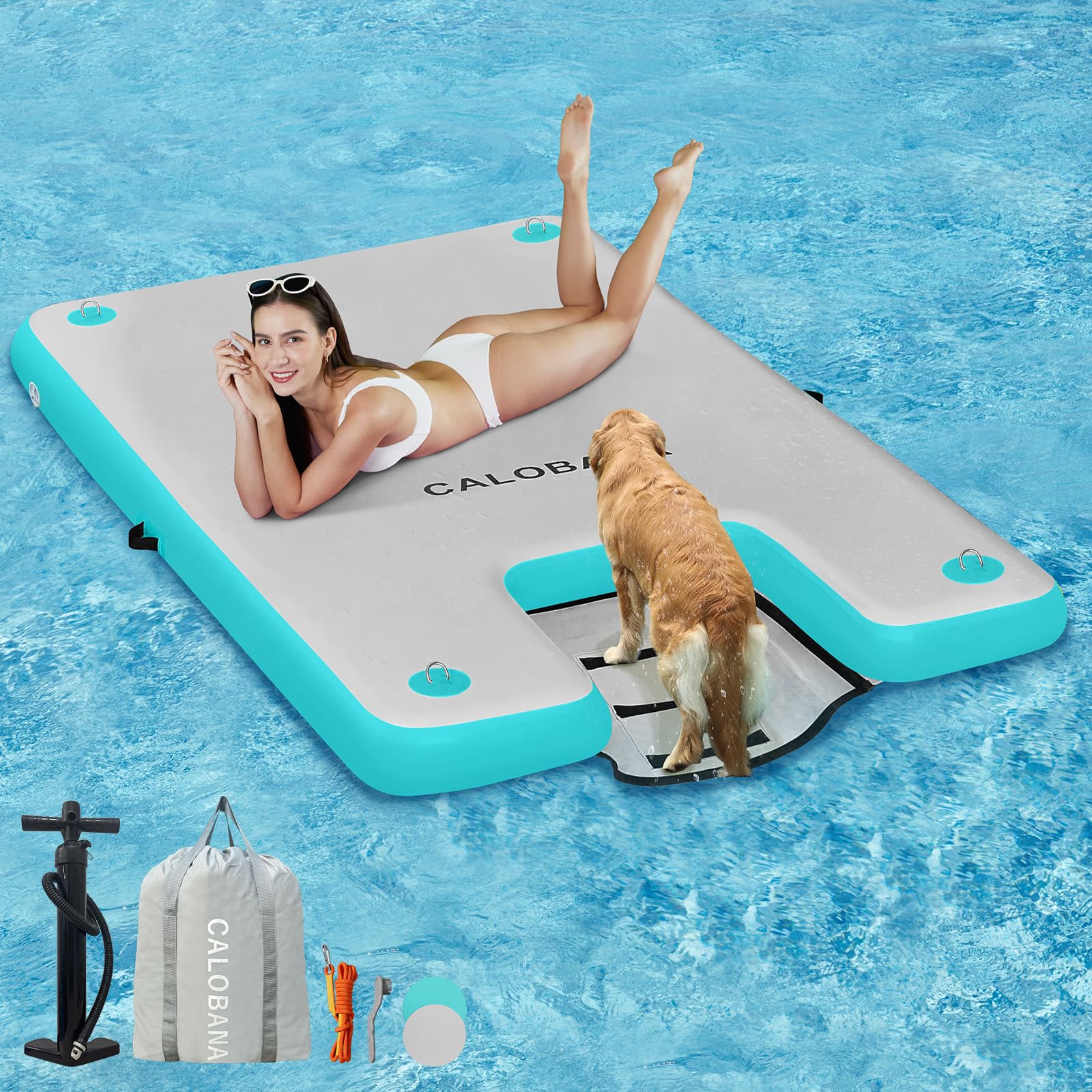 Muelle flotante inflable, flotadores de lago para adultos, plataforma de agua flotante con escalera desmontable para lago