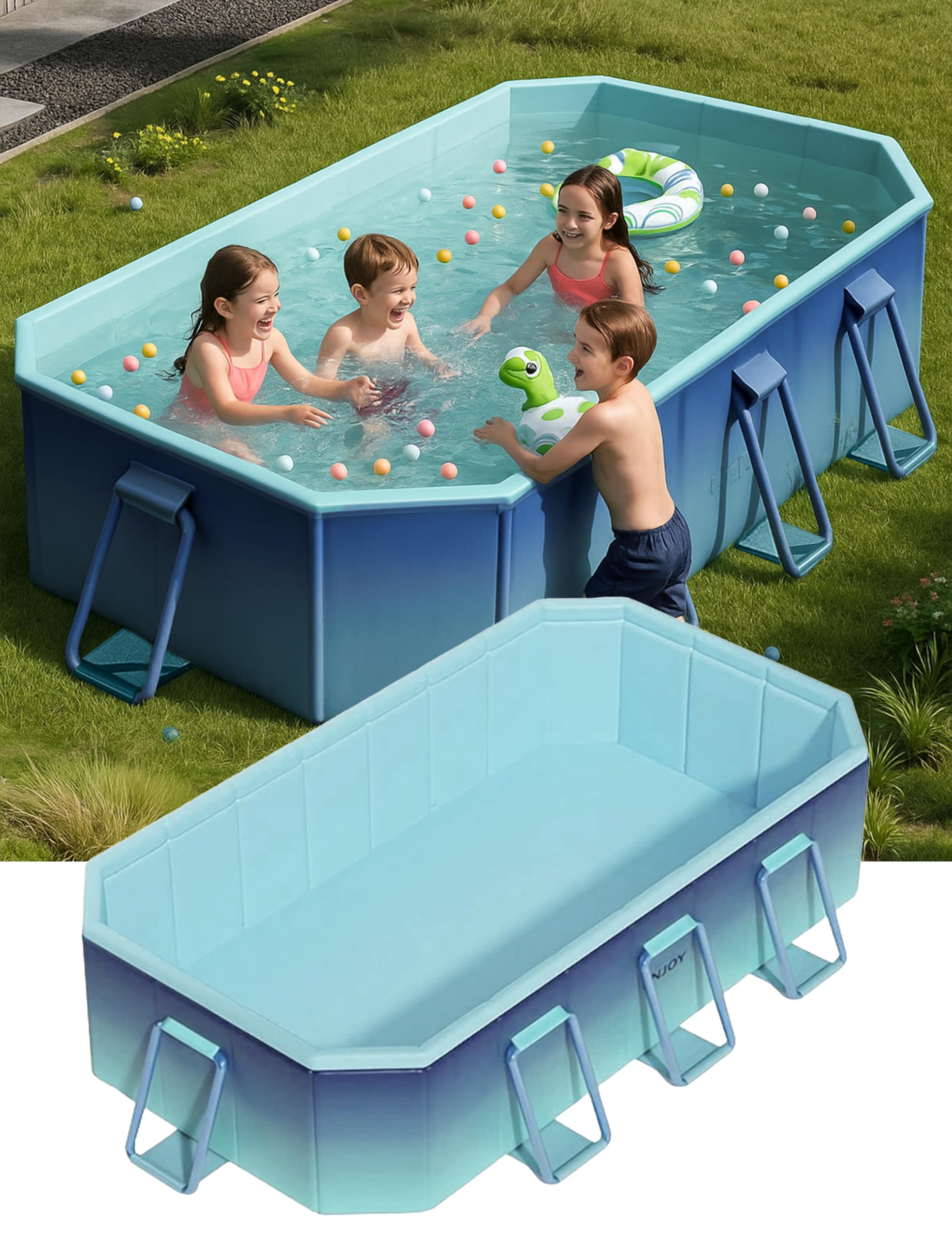 Piscina familiar rectangular grande plegable, no inflable, fácil instalación, adecuada para adultos