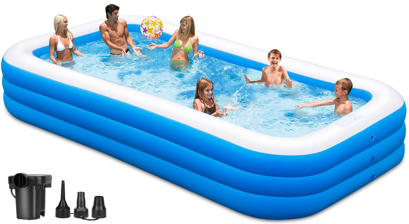 Piscina inflable, 130 x 72 x 22 pulgadas, piscina inflable gruesa de gran tamaño con bomba, piscinas para adultos, familia, patio
