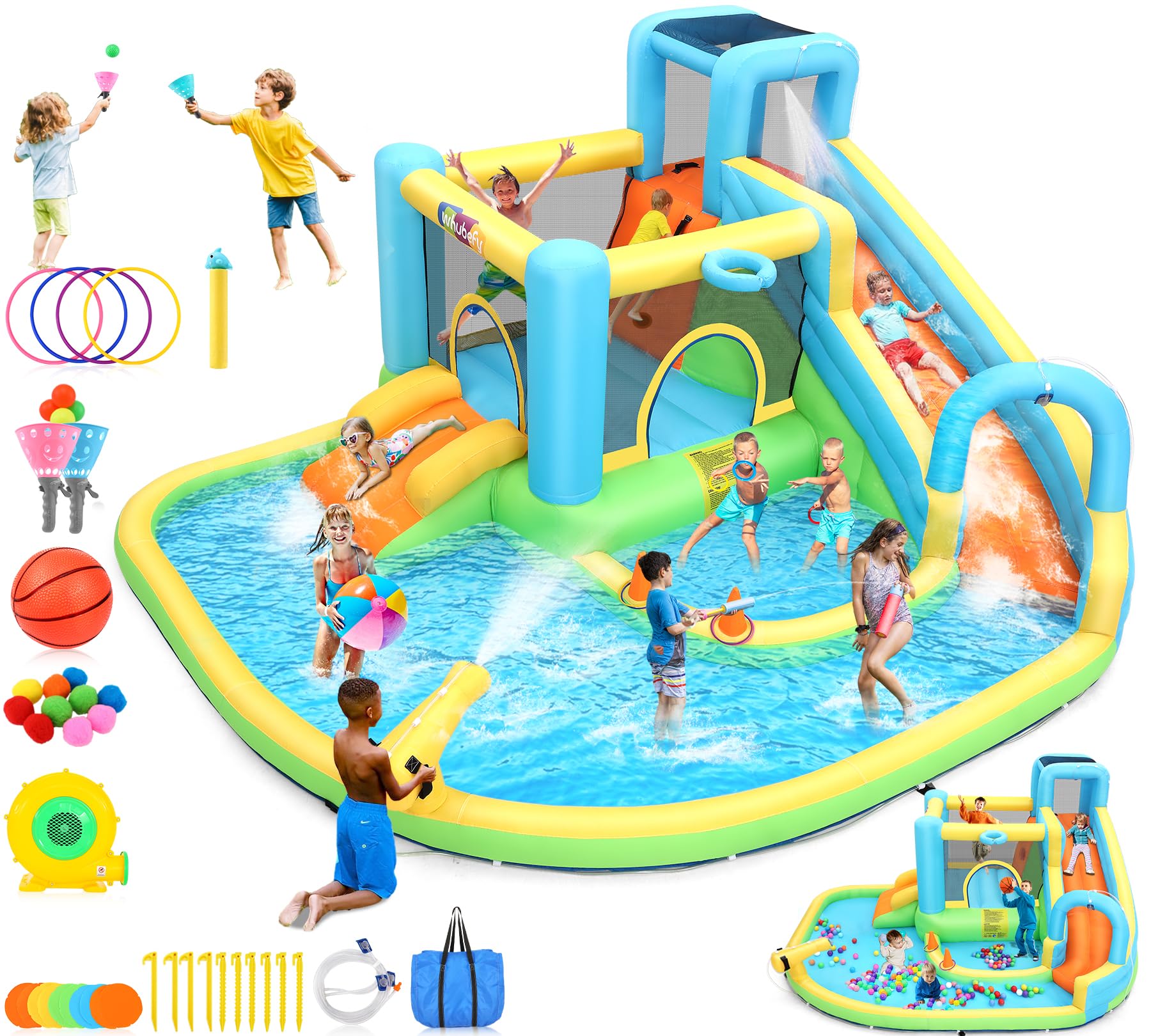 Casa de rebote de tobogán acuático de 12.8 x 12 pies para niños, parque acuático inflable 12 en 1 con juego de pelota de atrapador