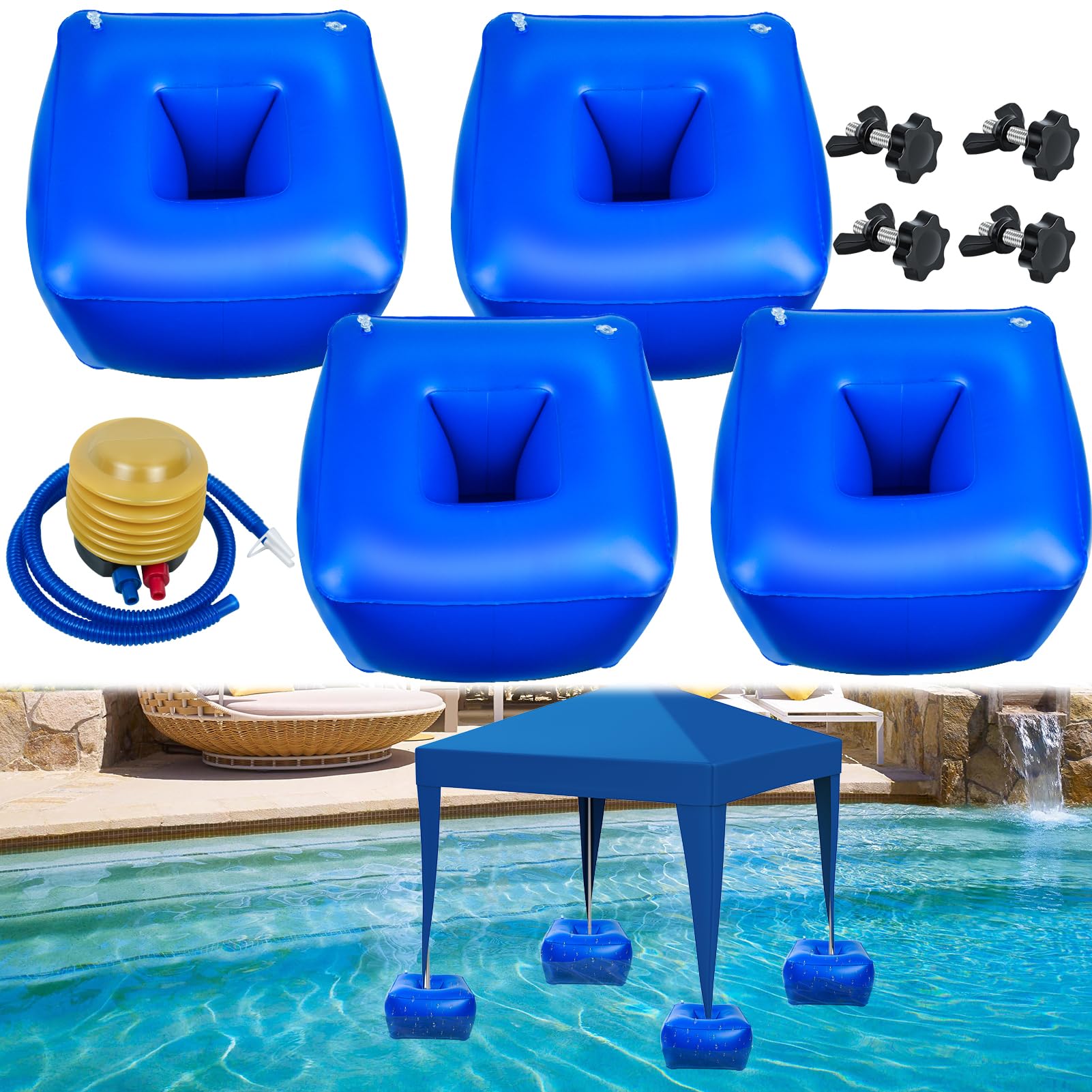 Kit de flotador de toldo inflable, 18 x 18 x 10 pulgadas, kit flotante de PVC grueso para piscina, accesorios de flotadores con bo