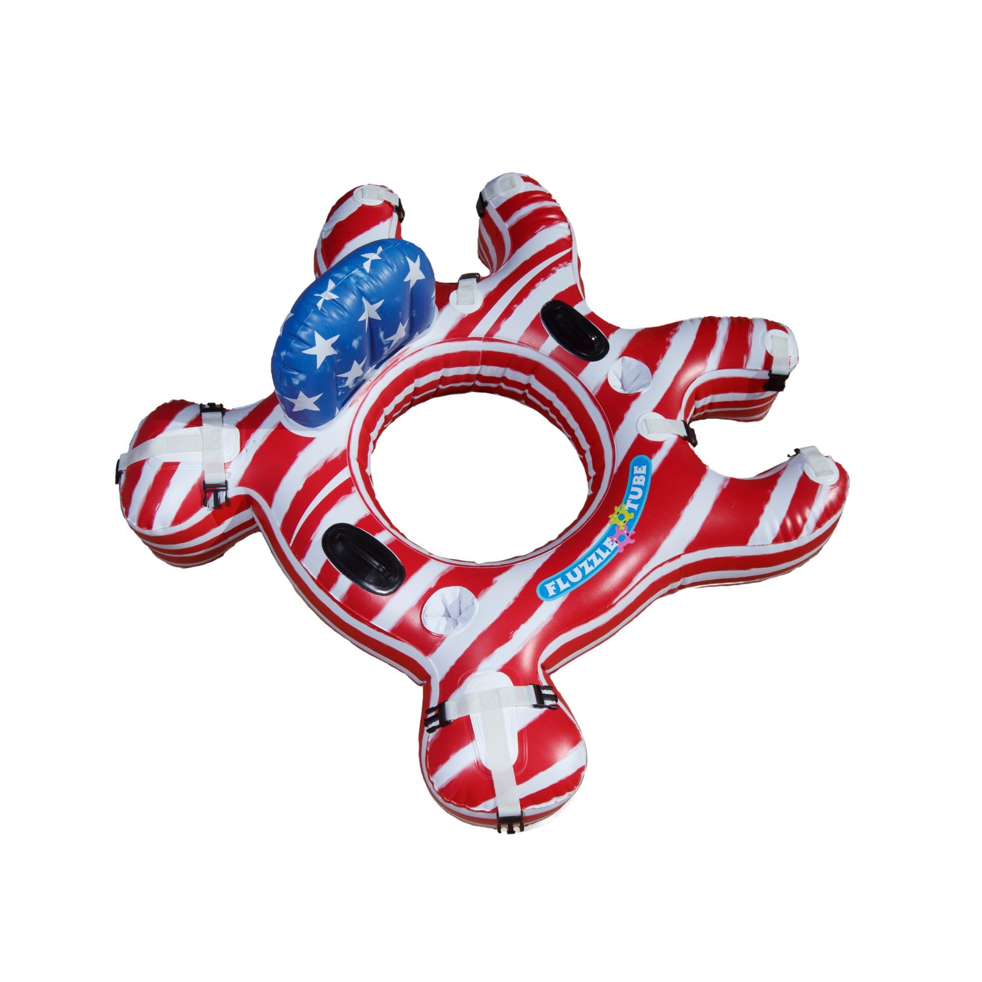Tubo de agua inflable de bandera estadounidense con respaldo y portavasos | Silla flotante conectable para playa, natación, piscin