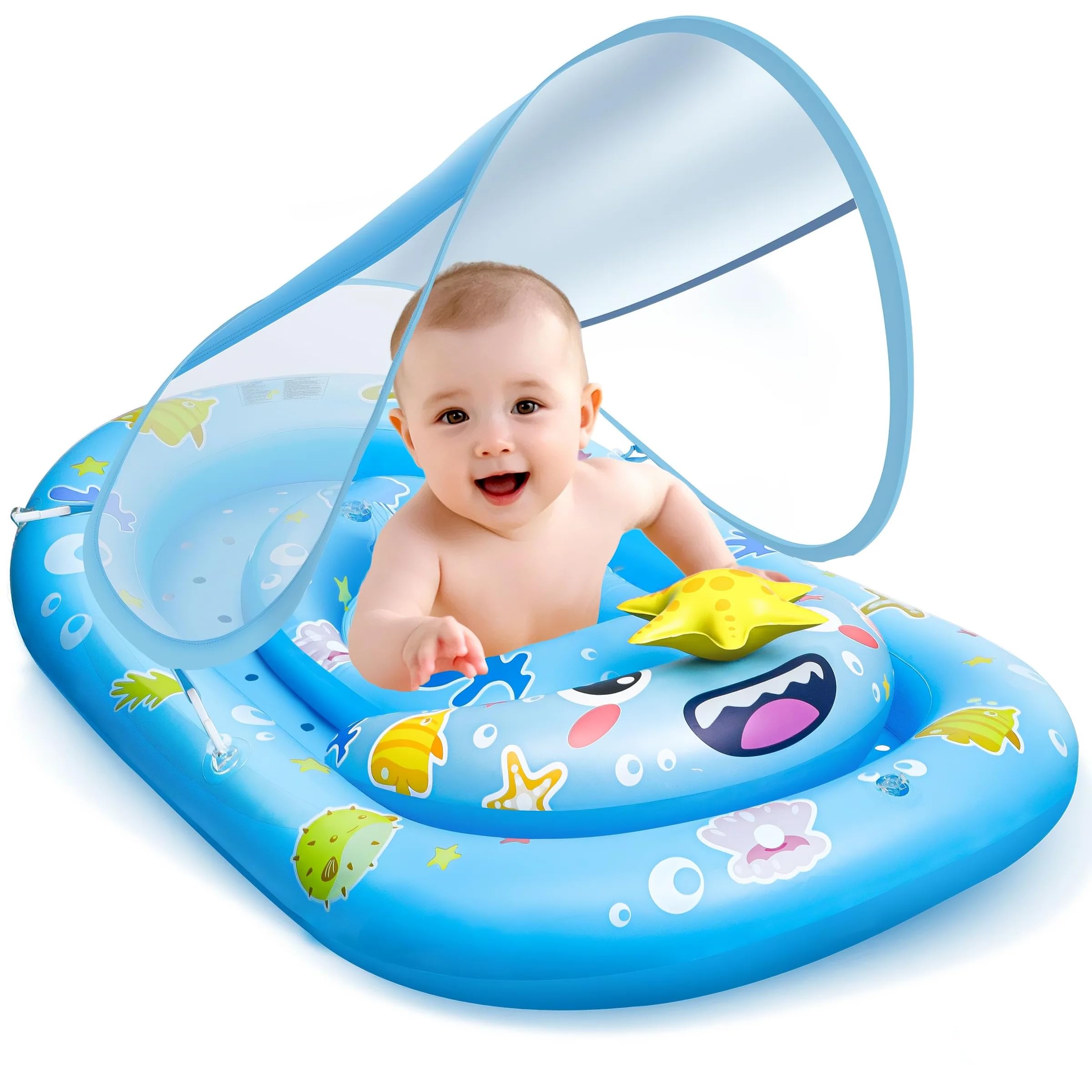 Baby Float with Canopy- UPF50+ Sun Protection Baby Pool Float,Inflatable Kids Pool Float with Adjustable Safety Seat for 6-36 Mont