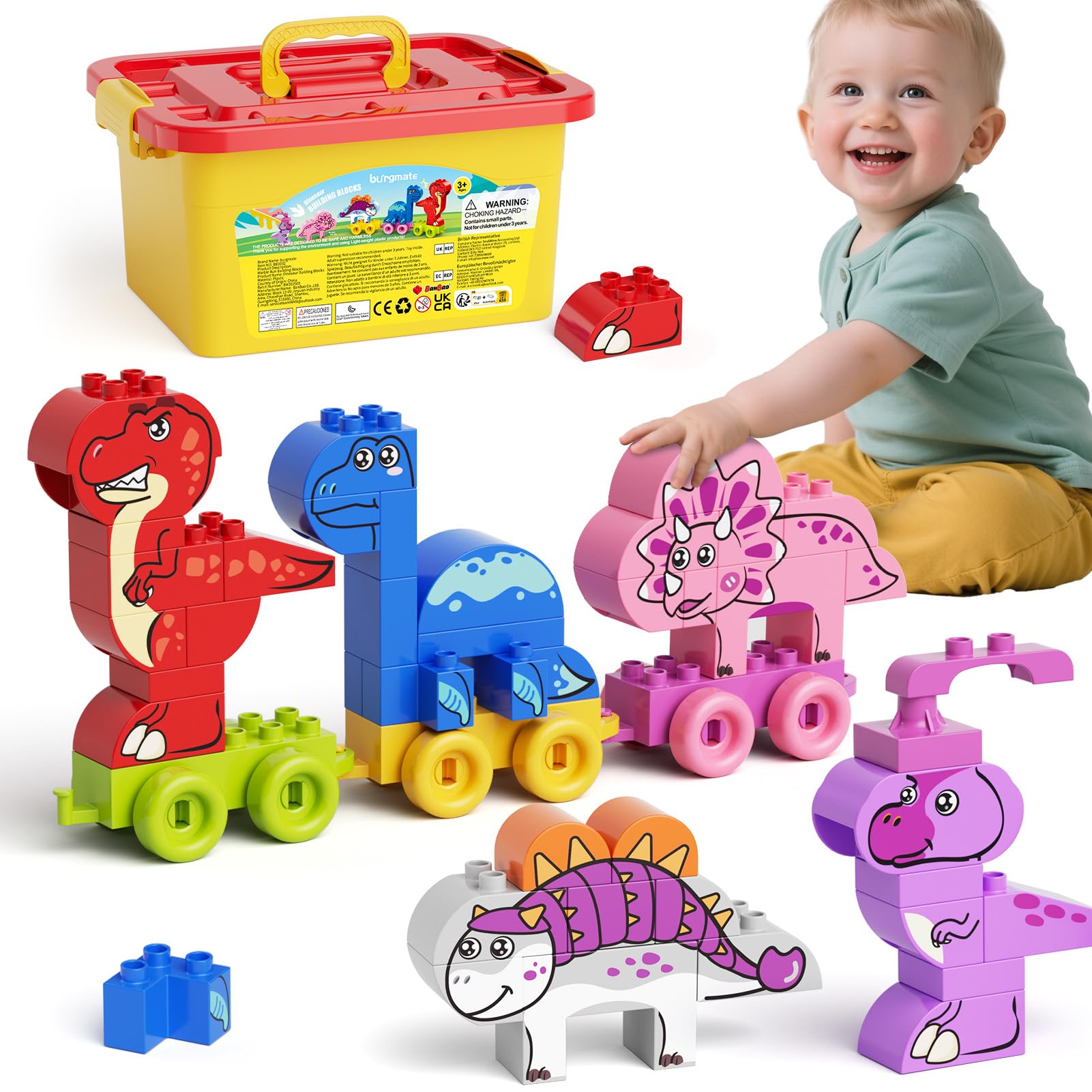 Juguetes de bloques de construcción de dinosaurios, juego de construcción de tren de animales con caja de almacenamiento, 5 juguet