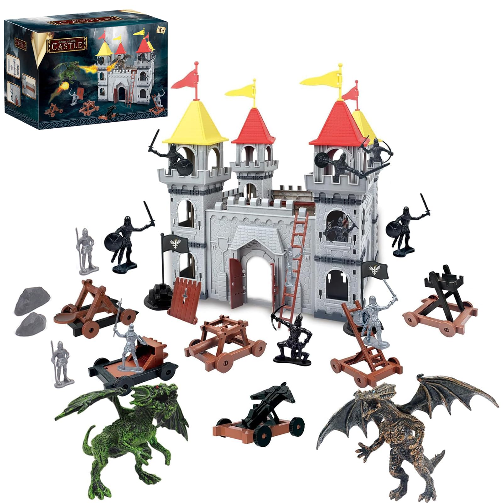 Juguete de castillo medieval, figuras del ejército soldado, juego de castillo de bricolaje, juego en miniatura con caballería de c