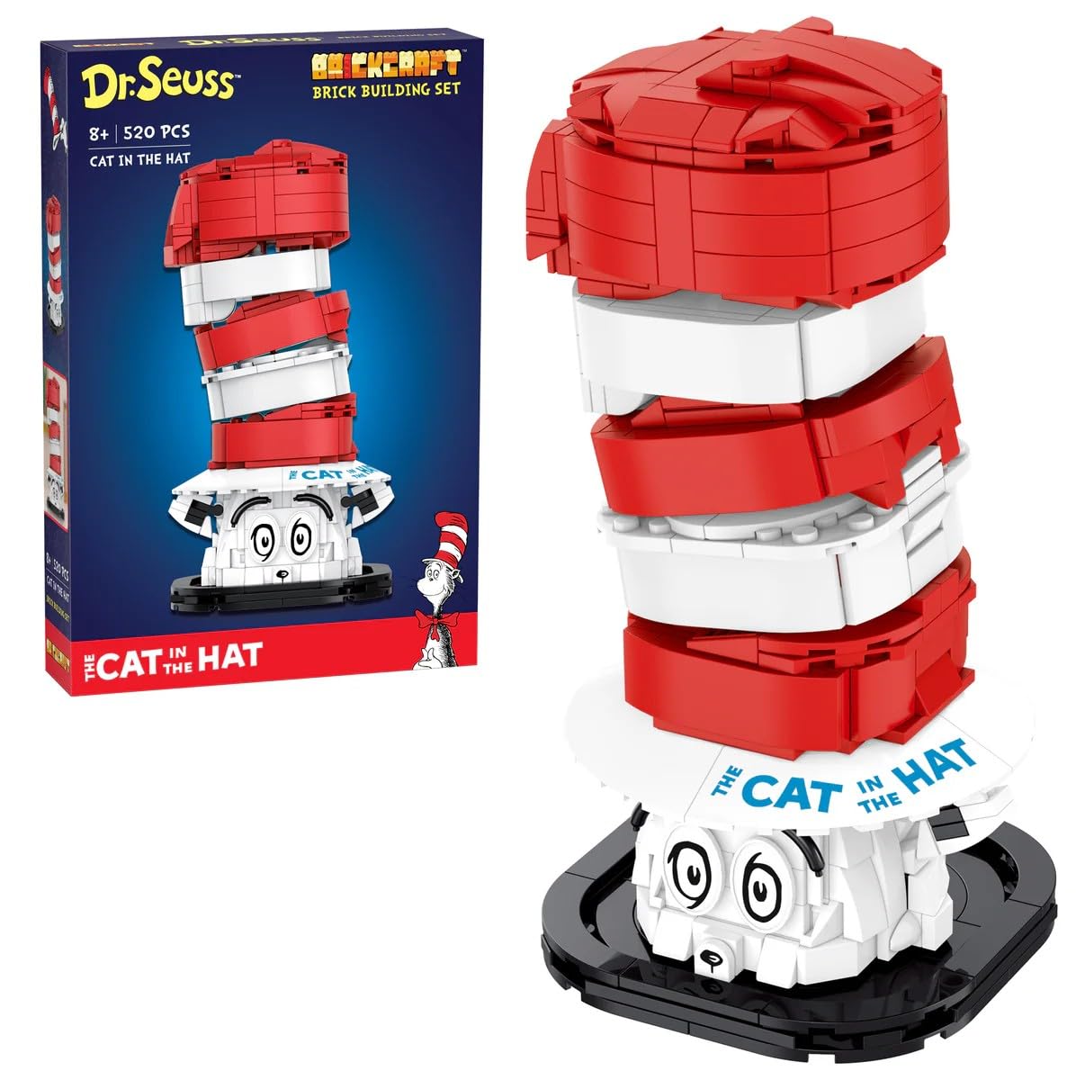 Con licencia oficial Dr. Seuss Cat in The Hat Bust con piezas impresas, incluye 556 piezas de ladrillo multicolor juego de constru