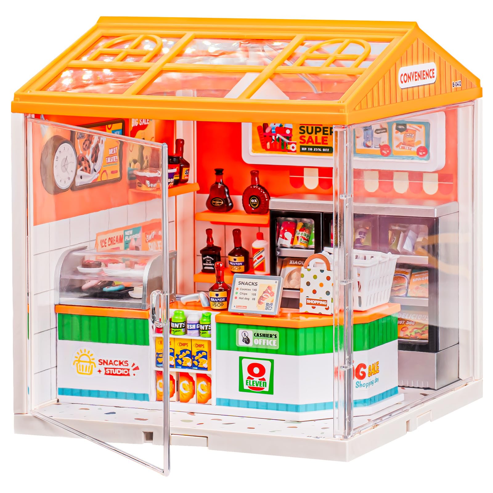 Tienda de suministros de kit de casa en miniatura, juego de juguetes de construcción de casas de plástico con techo y 2 puertas, k
