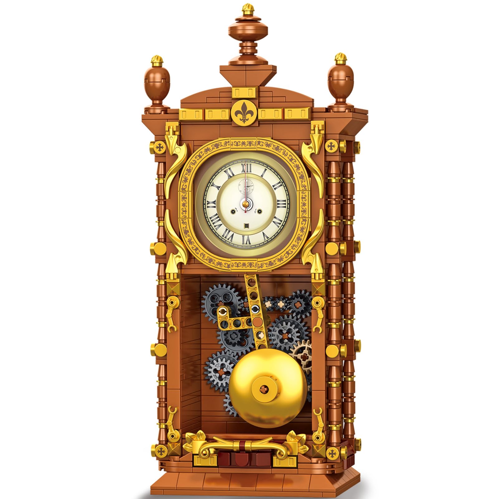 Juego de bloques de construcción de reloj retro para adultos, reloj de péndulo mecánico enlazable, kit de ladrillo de construcción