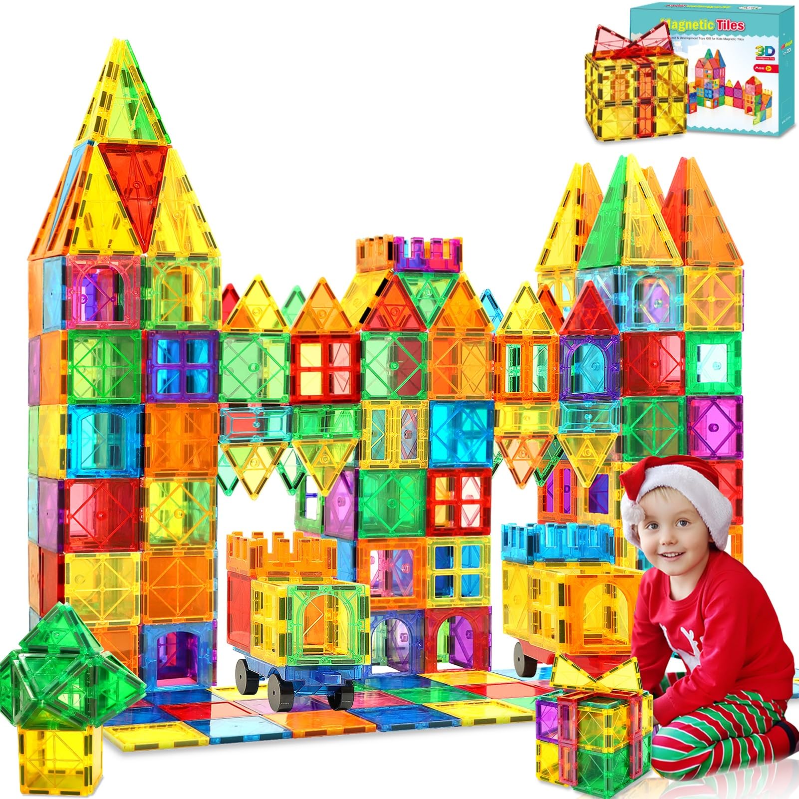 100 piezas de azulejos magnéticos con 2 autos bloques de construcción magnéticos para niños pequeños de 3, 4, 5, 6, 7 años, bloque