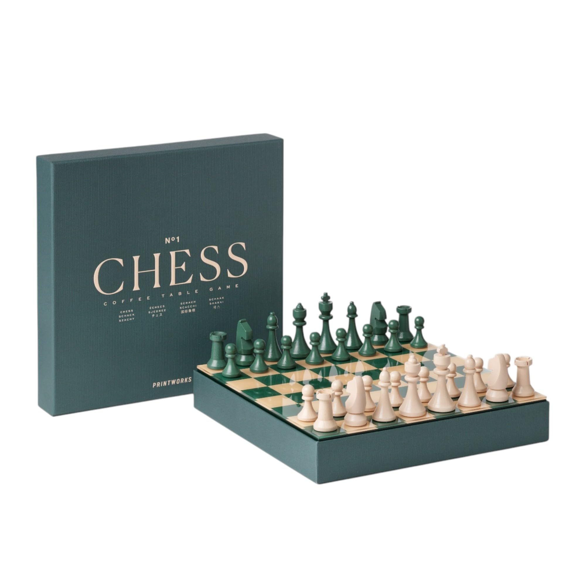 Ajedrez clásico – Juego de ajedrez de madera verde con tablero acrílico – Elegante juego de mesa auxiliar para adultos y niños a p