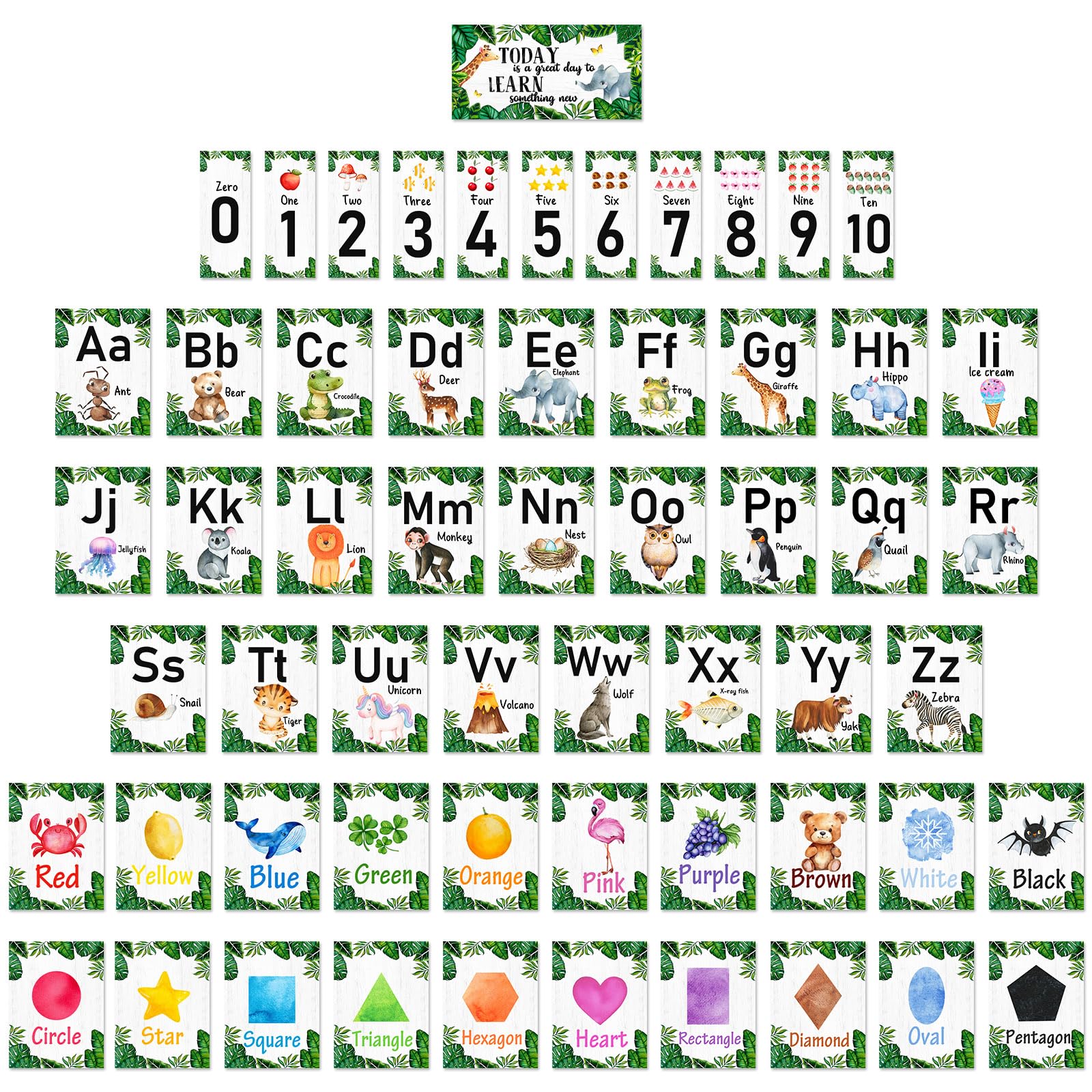 Juego de 67 tableros de anuncios del alfabeto y números, tarjetas educativas manuscritas, números del alfabeto, colores, formas, p