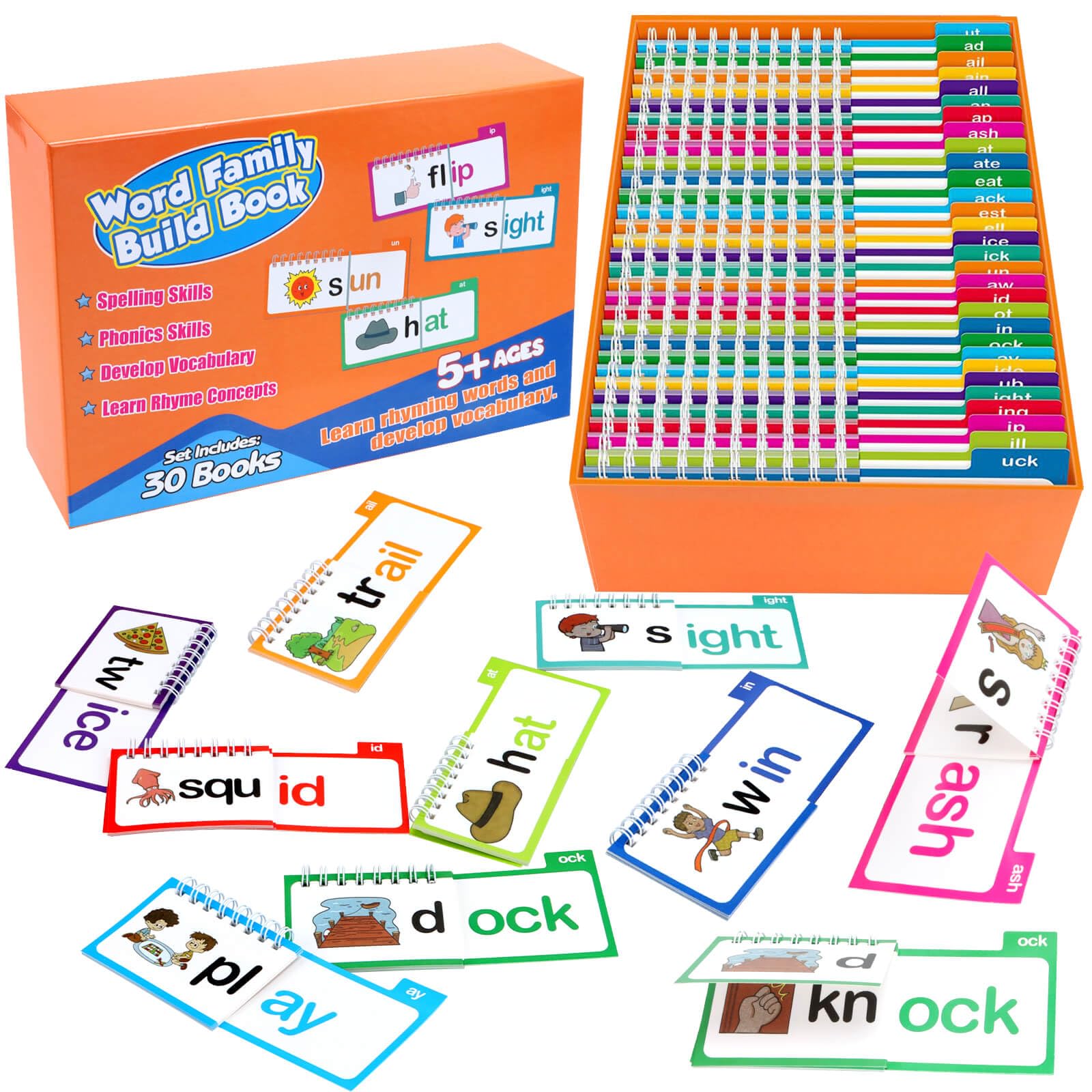 Dolanus 30 libros de lectura y rima, tarjetas de vocabulario ABC de familia de palabras, palabras de vista de jardín de infantes –