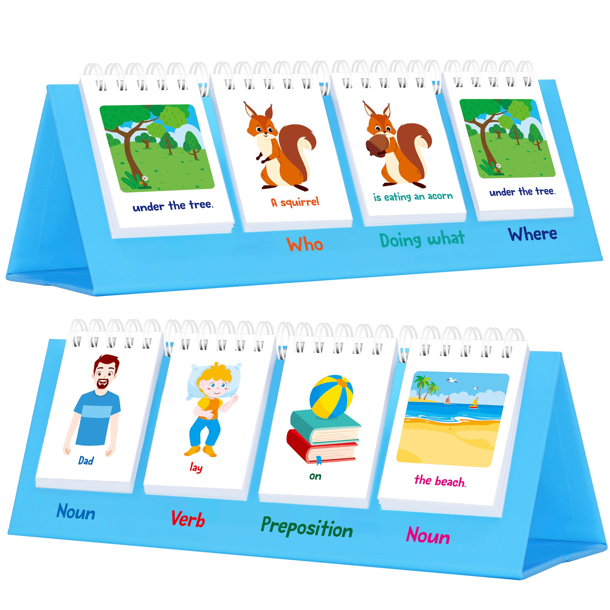 Rotafolios de oraciones, 80 tarjetas de doble cara, 40 oraciones, aprende partes del discurso quién/qué/dónde construcción de orac