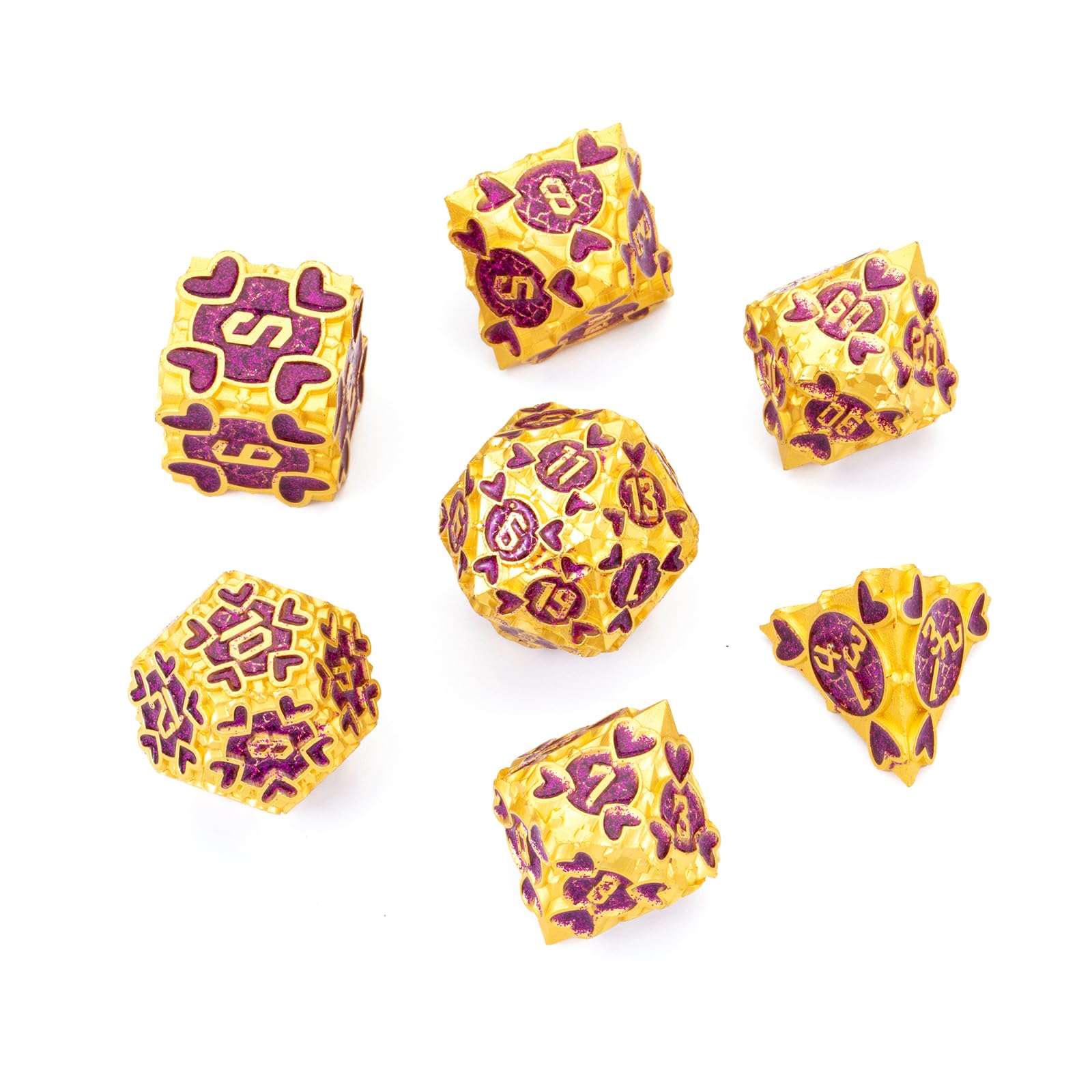 DND – Juego de dados de metal, 7 piezas, caja de dados DND para juegos de mesa MTR PRG de Calabozos y Dragones (dorado-morado)
