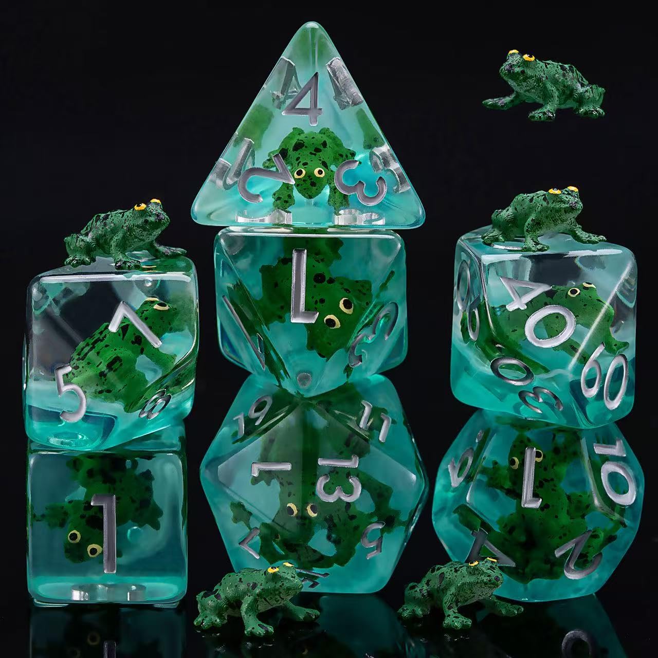 DND – Juego de dados de resina de rana, dados poliédricos de animales para Calabozos y Dragones, RPG, MTG D&D 7-DIE (D4, D6, D8, D
