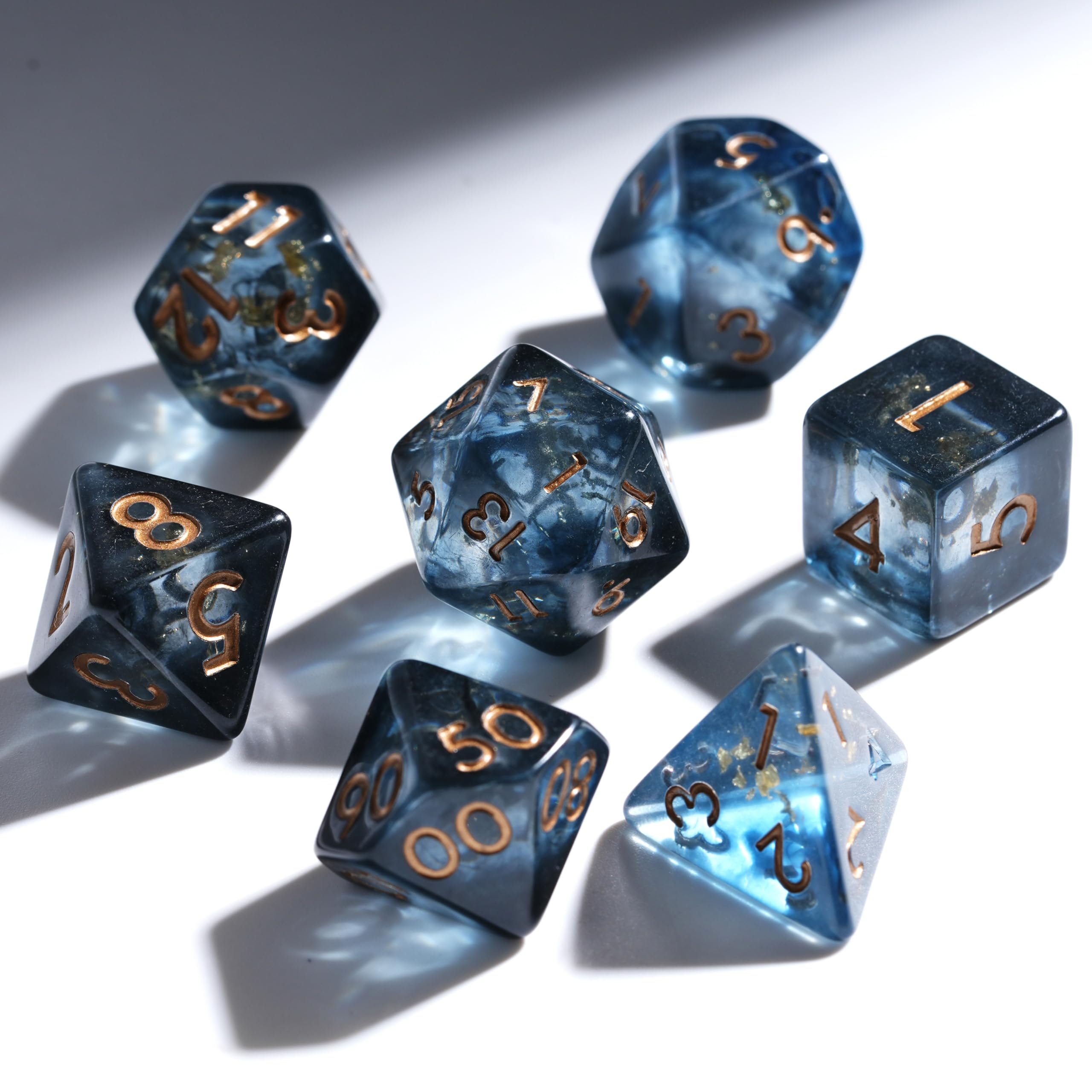 AUSTOR Juego de dados DND de resina de núcleo líquido, de borde afilado, 7 troqueles, juego de dados DND de arena movediza hechos