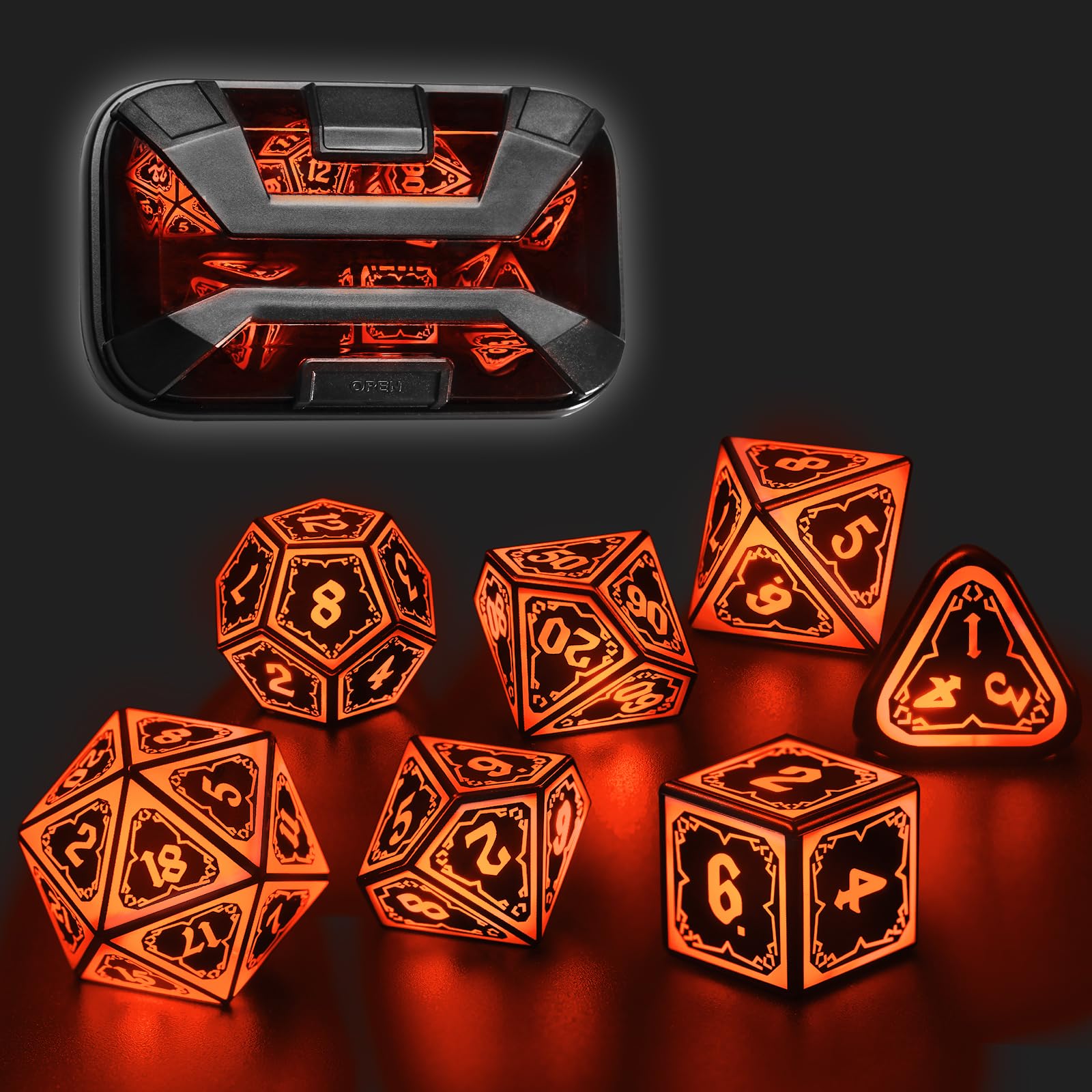 Juego de dados DND iluminables recargables, geniales dados LED D y D, 7 piezas con caja de carga, juego de dados poliédricos de ju