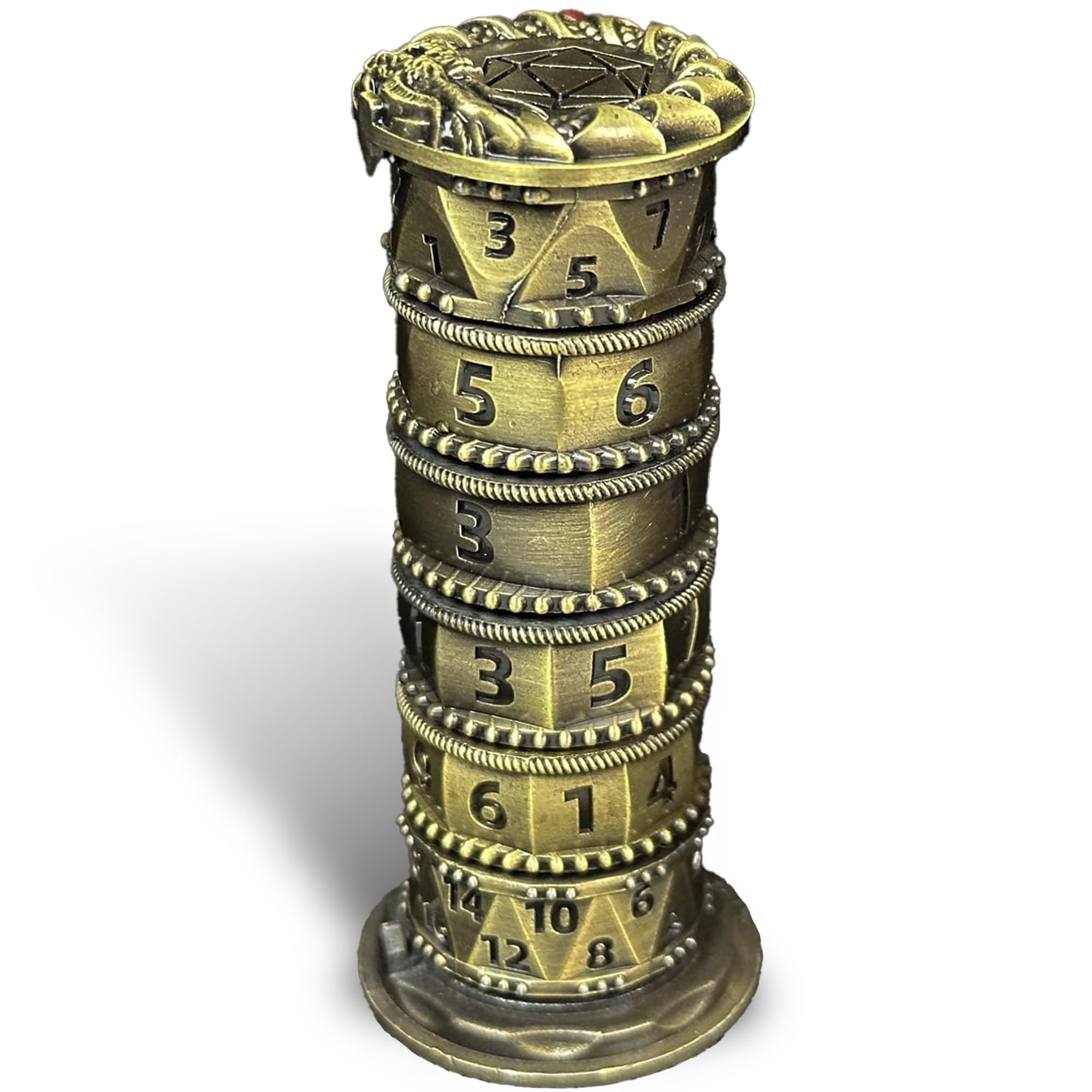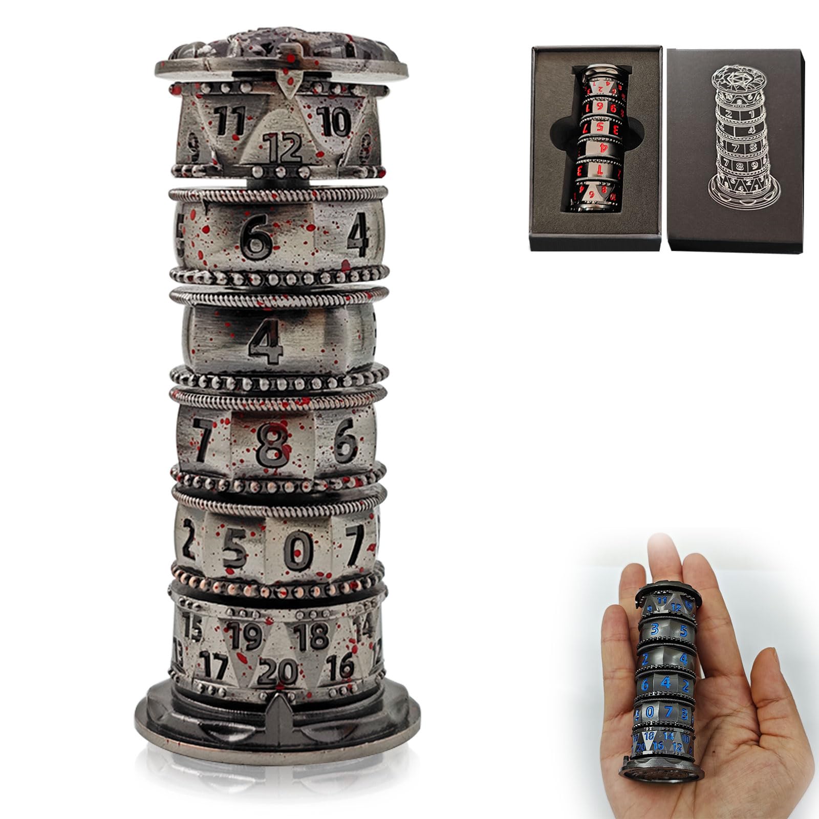 Juego de dados giratorios de pagoda 7 en 1, dados de ruleta únicos de metal D&D, D4 D6 D8 D10 D12 D20 D% para juegos de rol de maz