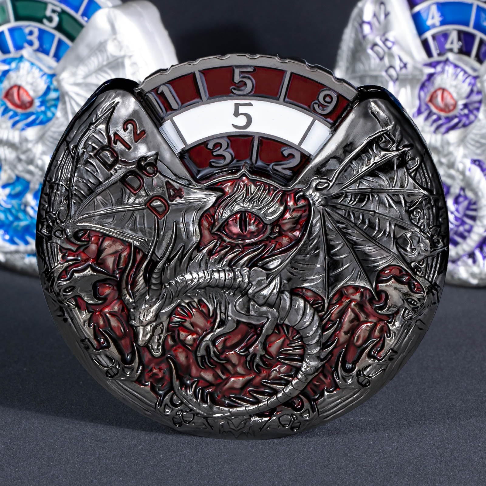 Dragonstone Keep – Juego de dados giratorios de ruleta para juego de dados DND, 7 en 1, dados metálicos de dragón D&D con estuche