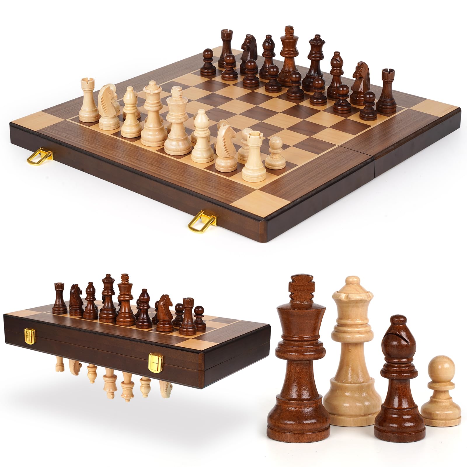 Juego de ajedrez de madera magnético de 15 pulgadas, tablero de ajedrez de madera plegable con piezas magnéticas, juegos de ajedre