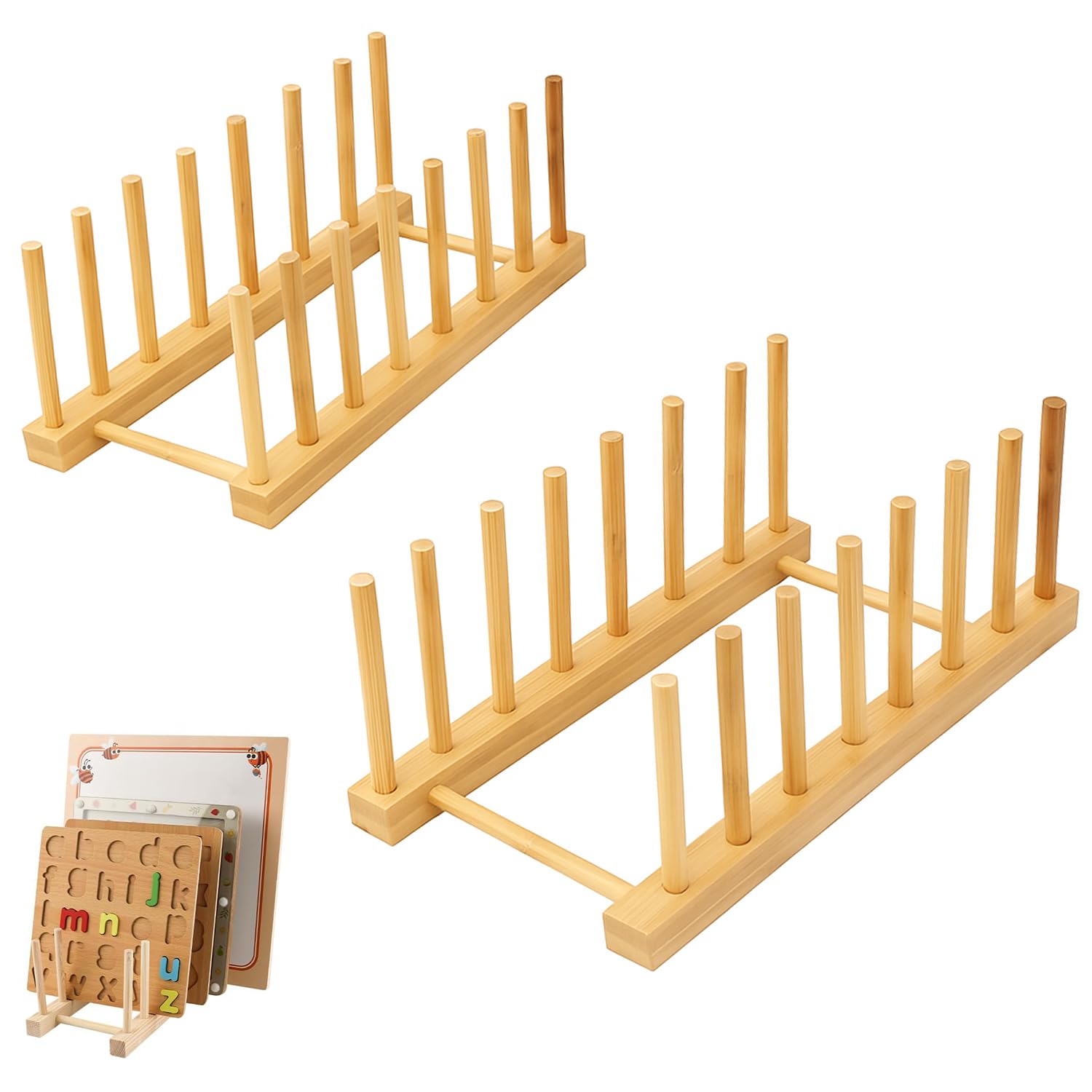 Estante de almacenamiento de rompecabezas de madera, 2 piezas, organizador de 8 ranuras para rompecabezas, estante organizador par