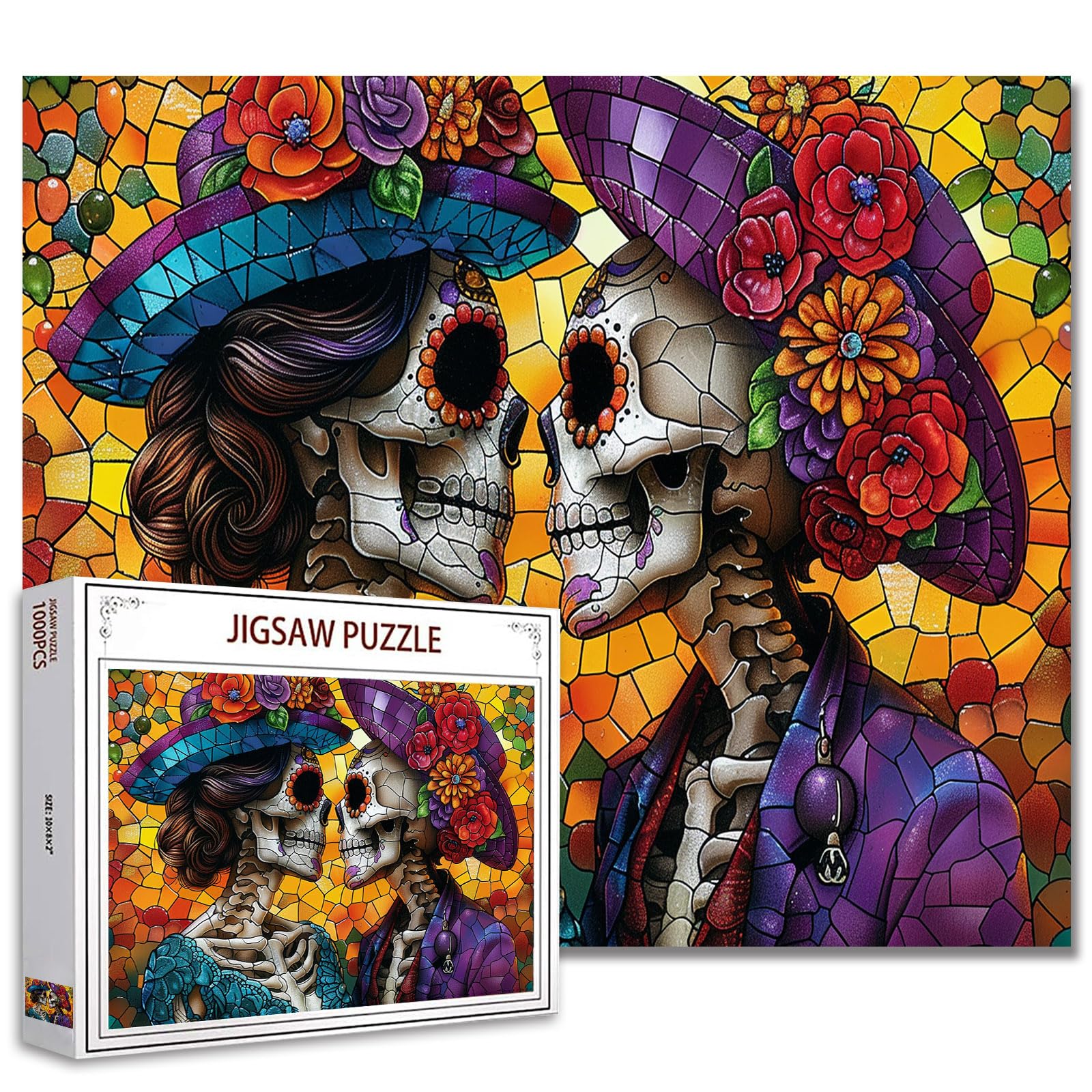 Tucocoo Rompecabezas de calavera del Día de los Muertos para adultos, 1000 piezas, rompecabezas románticos de novia y novio, estil