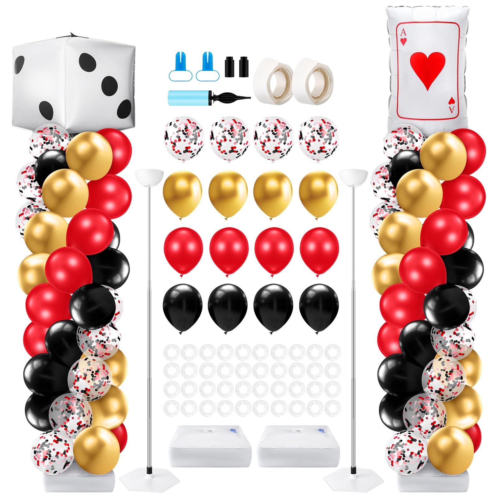 Kasyat Juego de 2 soportes de columna de globos de casino ajustables, rojo, negro, dorado, dados de póquer, globos de papel de alu