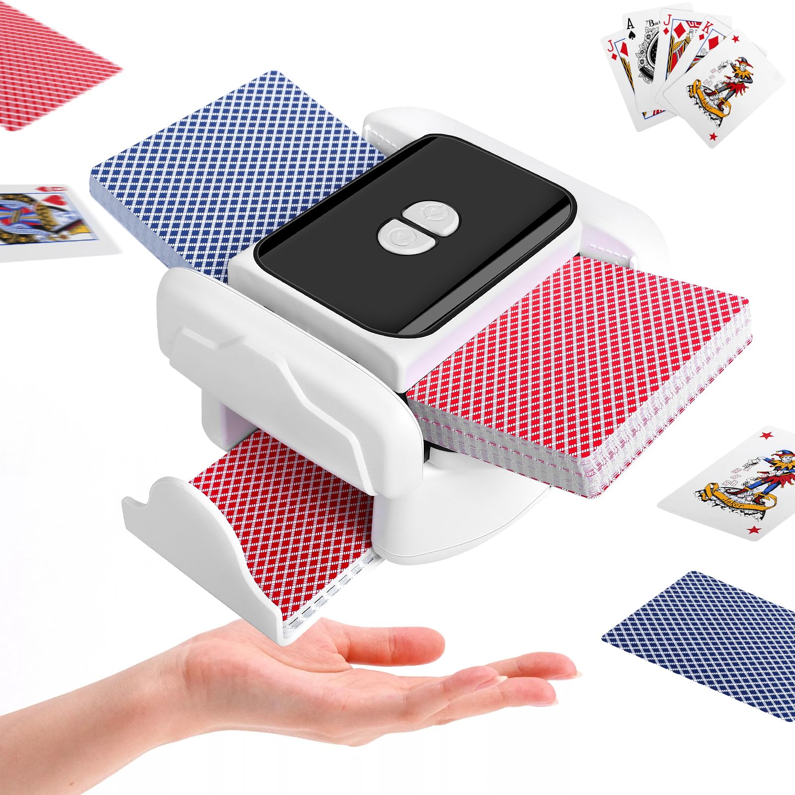 Barajador de cartas automático recargable para 1-2 cubiertas: Barajador eléctrico portátil de bajo ruido Modos manuales automático