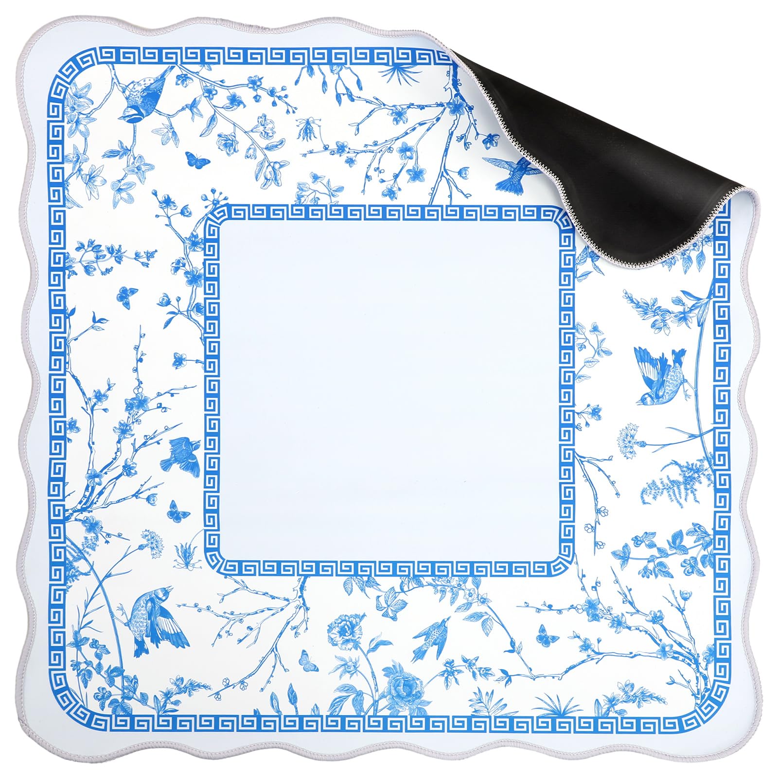 Tapete Mahjong cuadrado de 33.5 x 33.5 pulgadas para mesa de dominó con bordes festoneados estándar de goma Chinoiserie Mahjong Ma