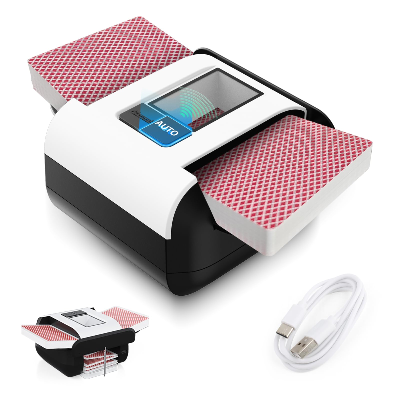 Barajador automático de tarjetas recargable de 2 cubiertas, barajador de tarjetas automático silencioso para UNO Poker Blackjack S