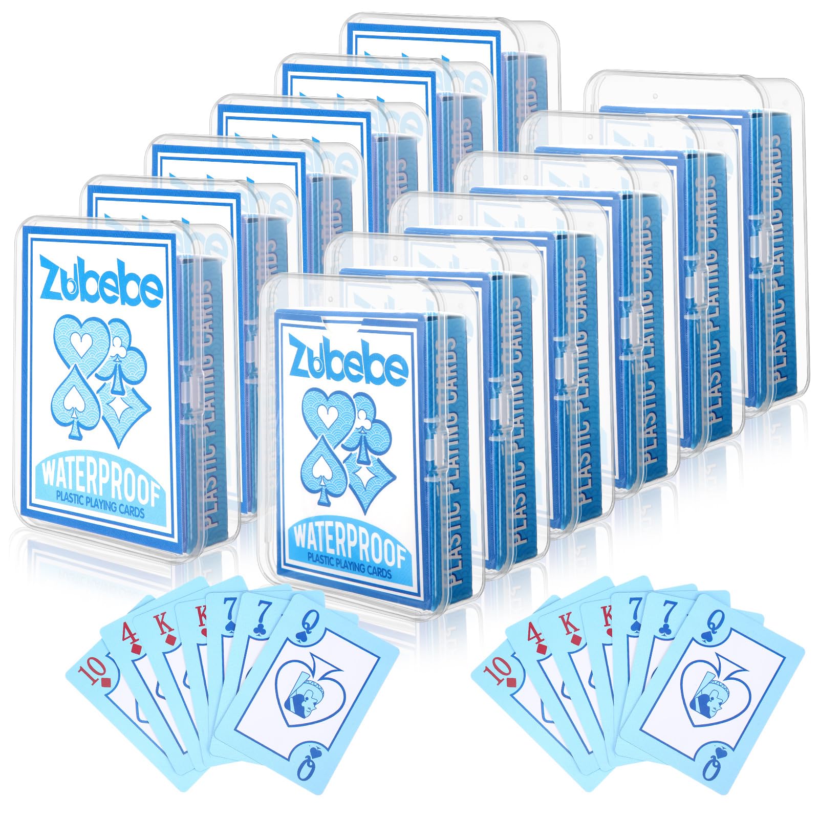 Zubebe 12 barajas de plástico impermeables a granel para fiesta en la playa en la piscina, póquer estándar con caja de almacenamie
