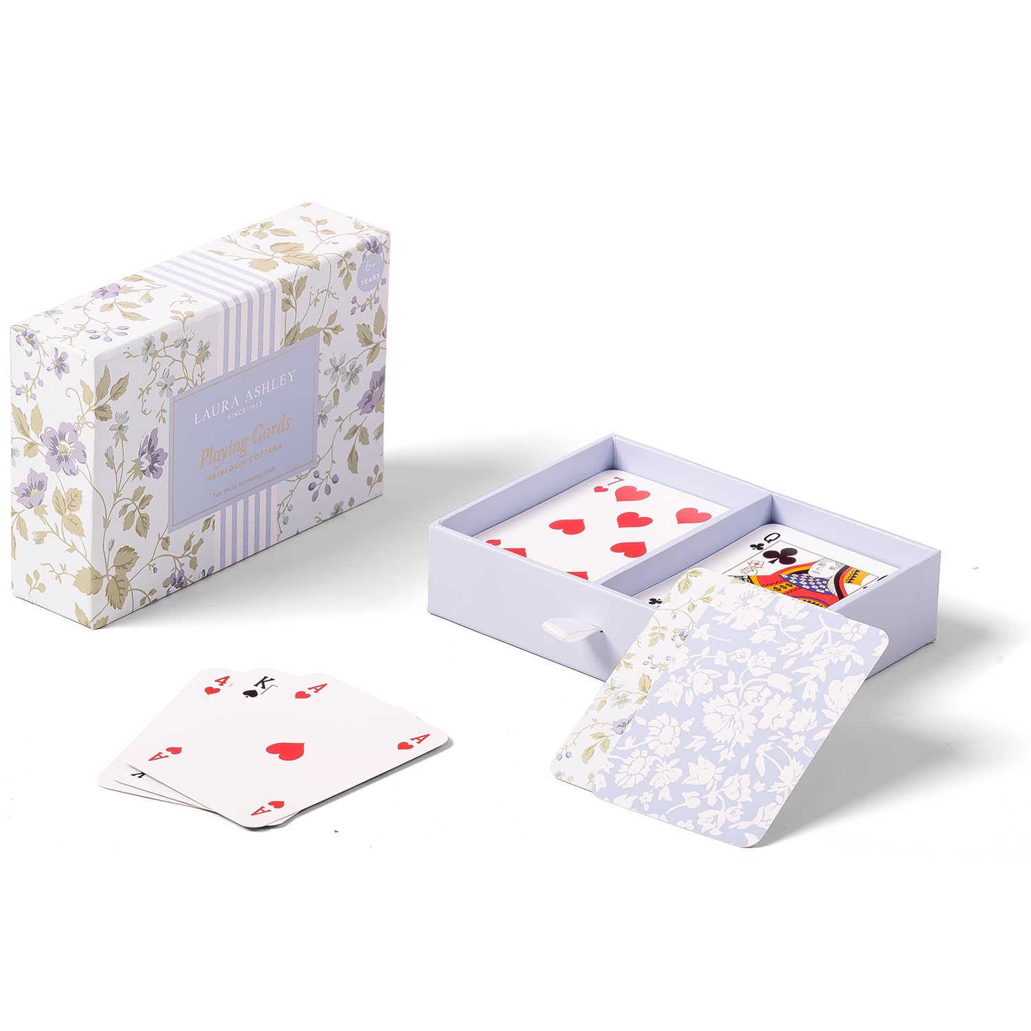 Laura Ashley Heirloom Cottage – Juego de 2 barajas de cartas estándar en una elegante caja de almacenamiento, tarjetas de póquer f