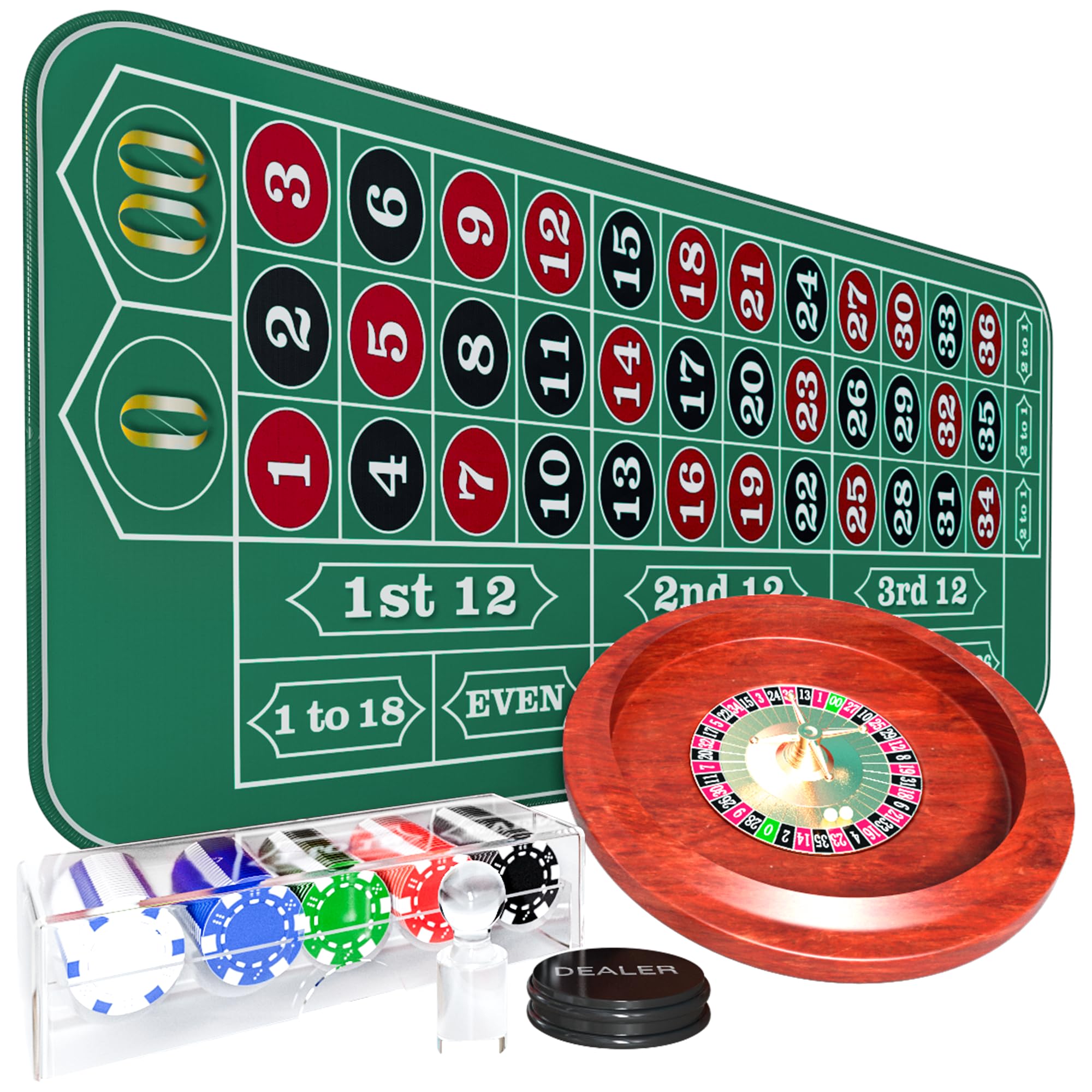 Juego de ruedas de ruleta para adultos con tapete de mesa de ruleta de goma de 35 x 16 pulgadas, rueda de ruleta de madera de 11 p