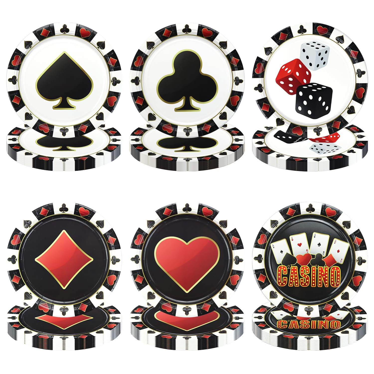 60 platos de papel de casino, platos de impresión de dados de póquer de 9 pulgadas para decoración de fiesta temática de casino, d