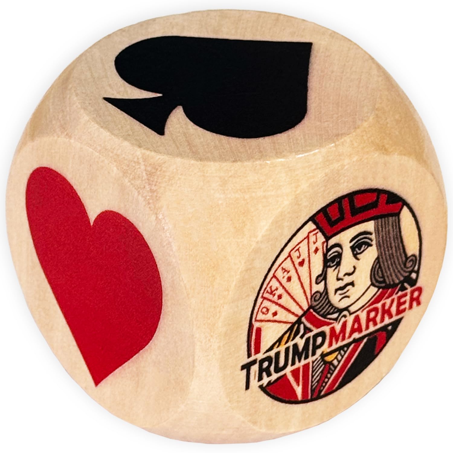 Trump – Dados marcadores, cubo Euchre de madera de 2 pulgadas con bolsa de almacenamiento de terciopelo, indicador de traje Trump