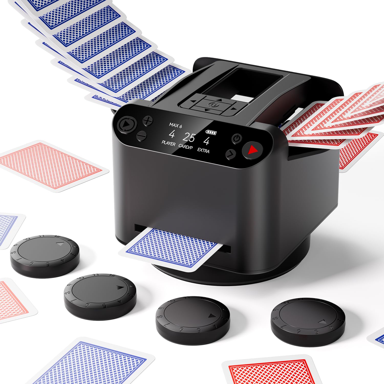 Barajador automático de cartas y distribuidor para 1-2 mazos, recargable, llamadas remotas, ultra silencioso, soporta hasta 12 jug