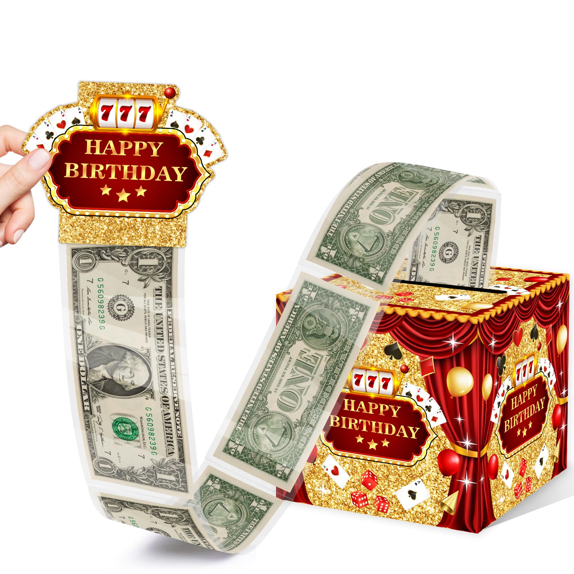 Caja de regalo de cumpleaños de casino, caja de póquer de feliz cumpleaños con tira de dibujo, cajas de efectivo extraíbles de Las