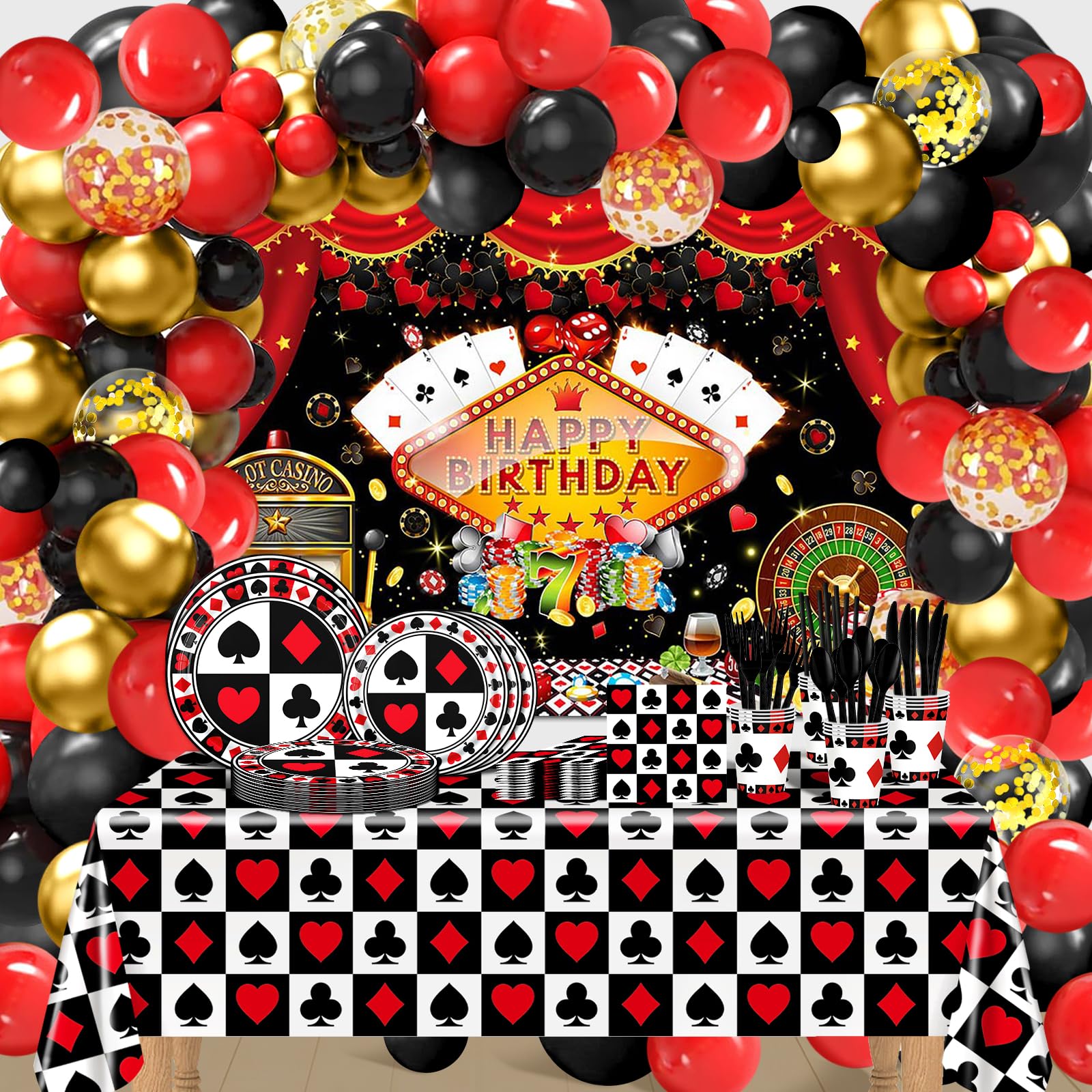Decoraciones para fiestas temáticas de casino, 269 unidades, platos de póquer, servilletas, tazas, pancartas de cumpleaños de casi