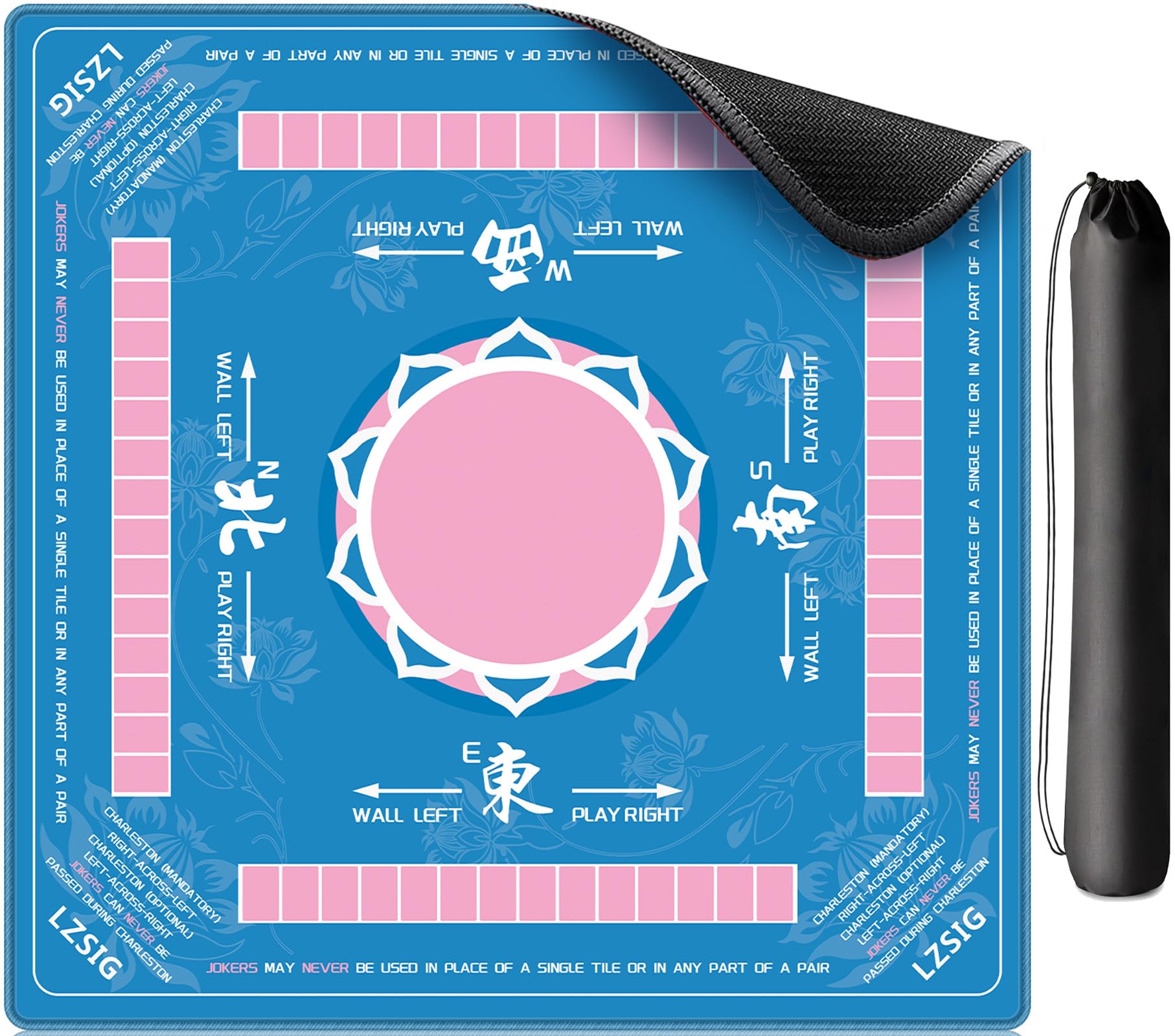 LZSIG Mahjong – Tapete con reglas de 33 x 33 pulgadas, tapete de mesa de Mahjong americano antideslizante de 0.118 pulgadas de gro