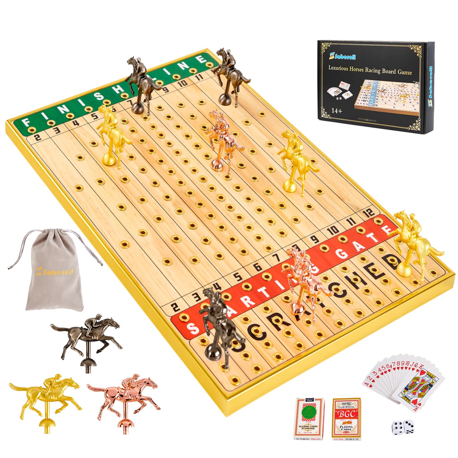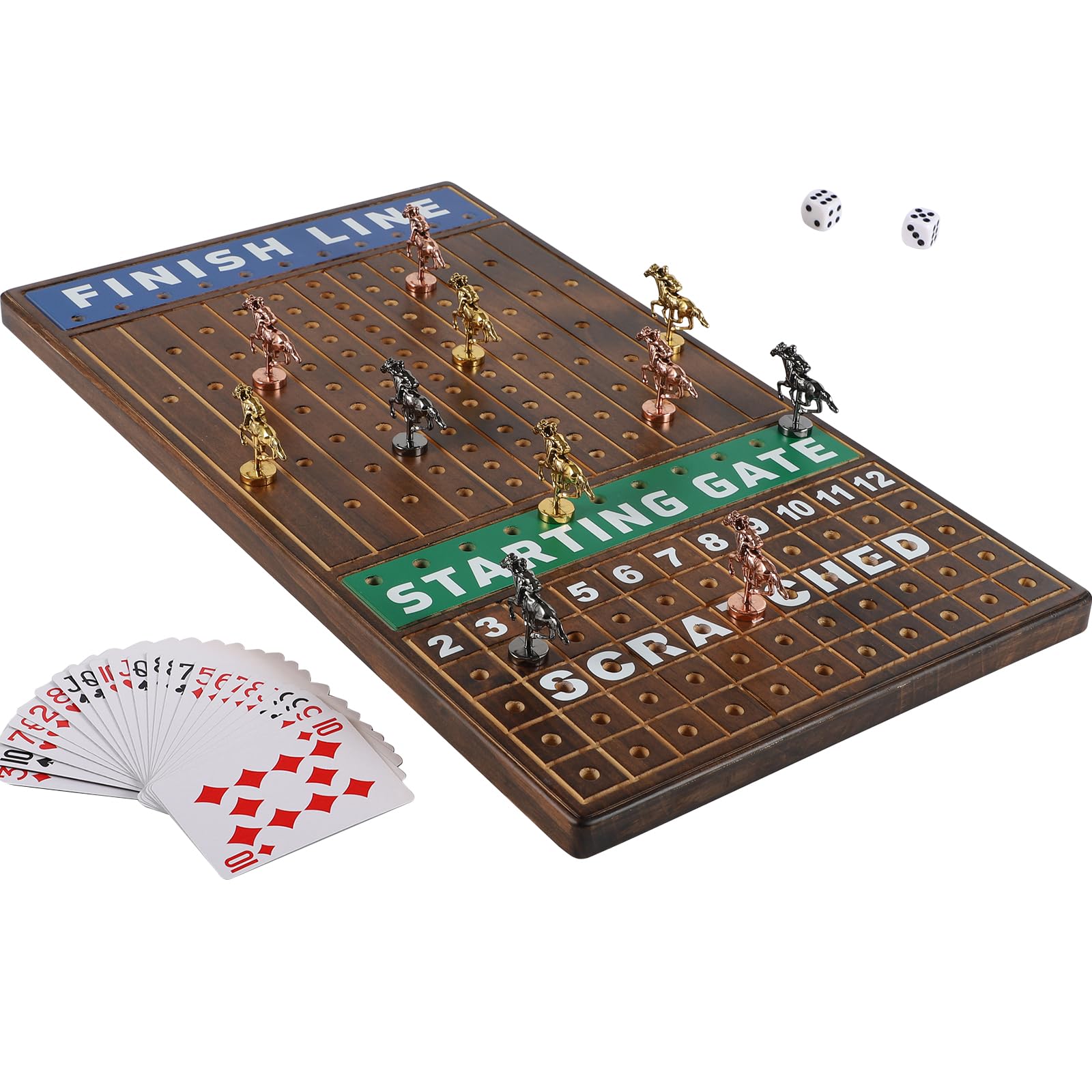 Juego de mesa grande de carreras de caballos de 21 pulgadas, madera maciza gruesa con 11 lujosos caballos de metal clásicos y dura