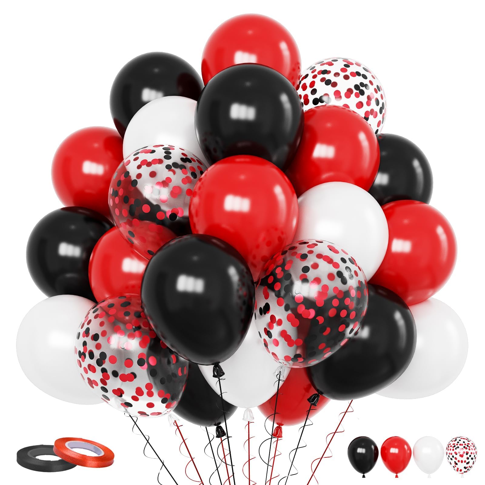 Funhot Globos rojos, negros y blancos, 60 globos negros y rojos, globos de fiesta de 12 pulgadas, globos de confeti negro y rojo p