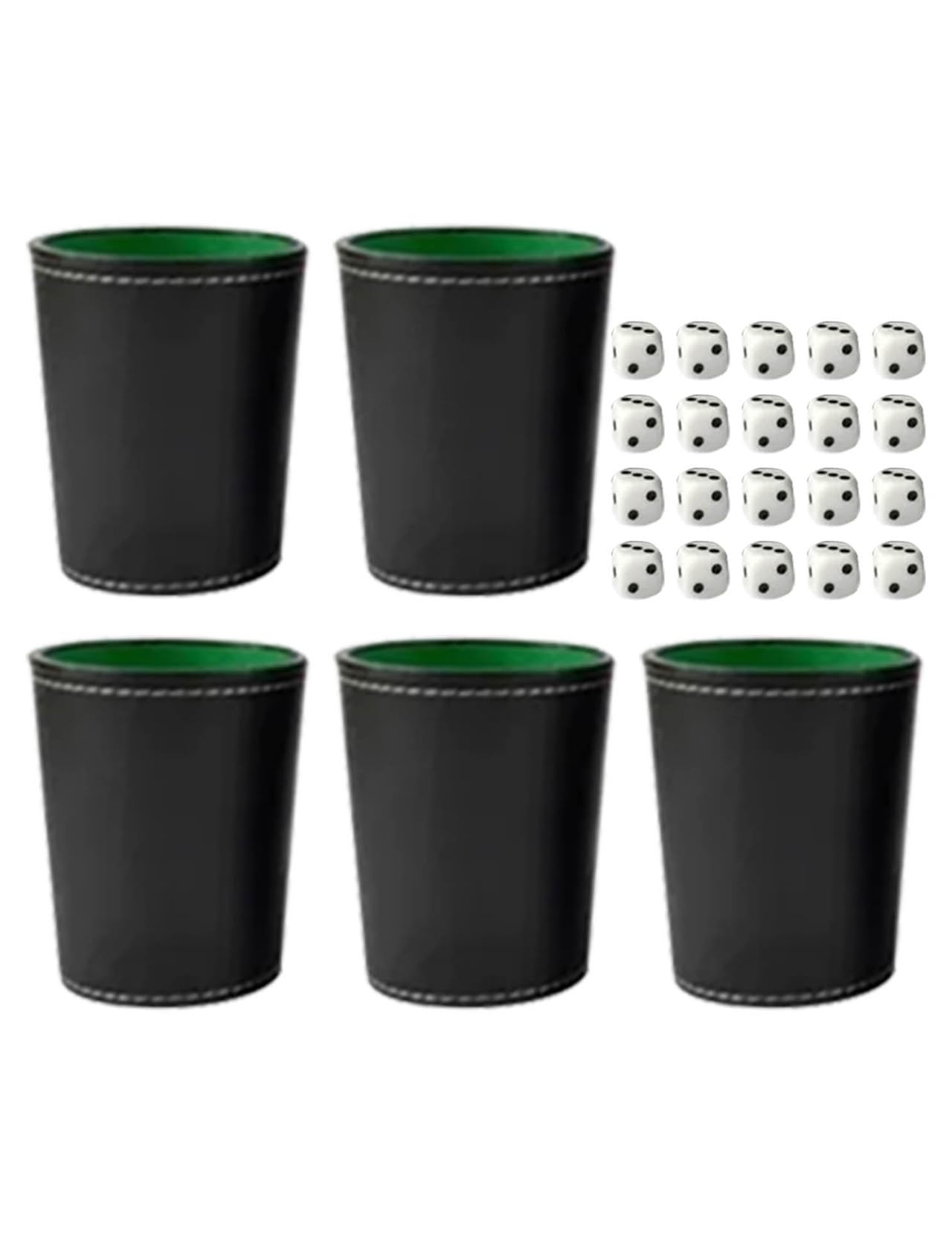 Juego de 5 tazas de dados de cuero, coctelera de dados de piel sintética con 20 dados y forro de fieltro silencioso para póquer/ju