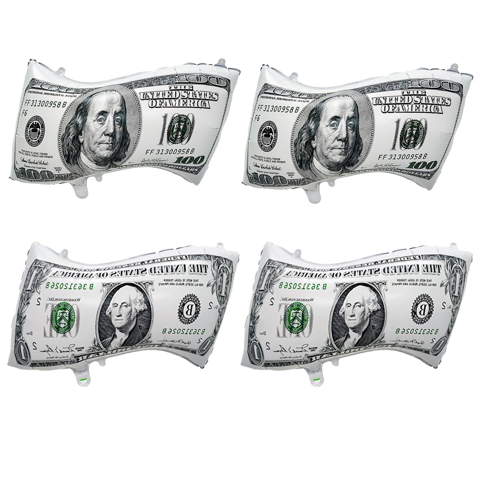 4 globos de billetes de dólar, decoración temática de casino, globos de papel de aluminio grandes de 25 pulgadas para decoración t