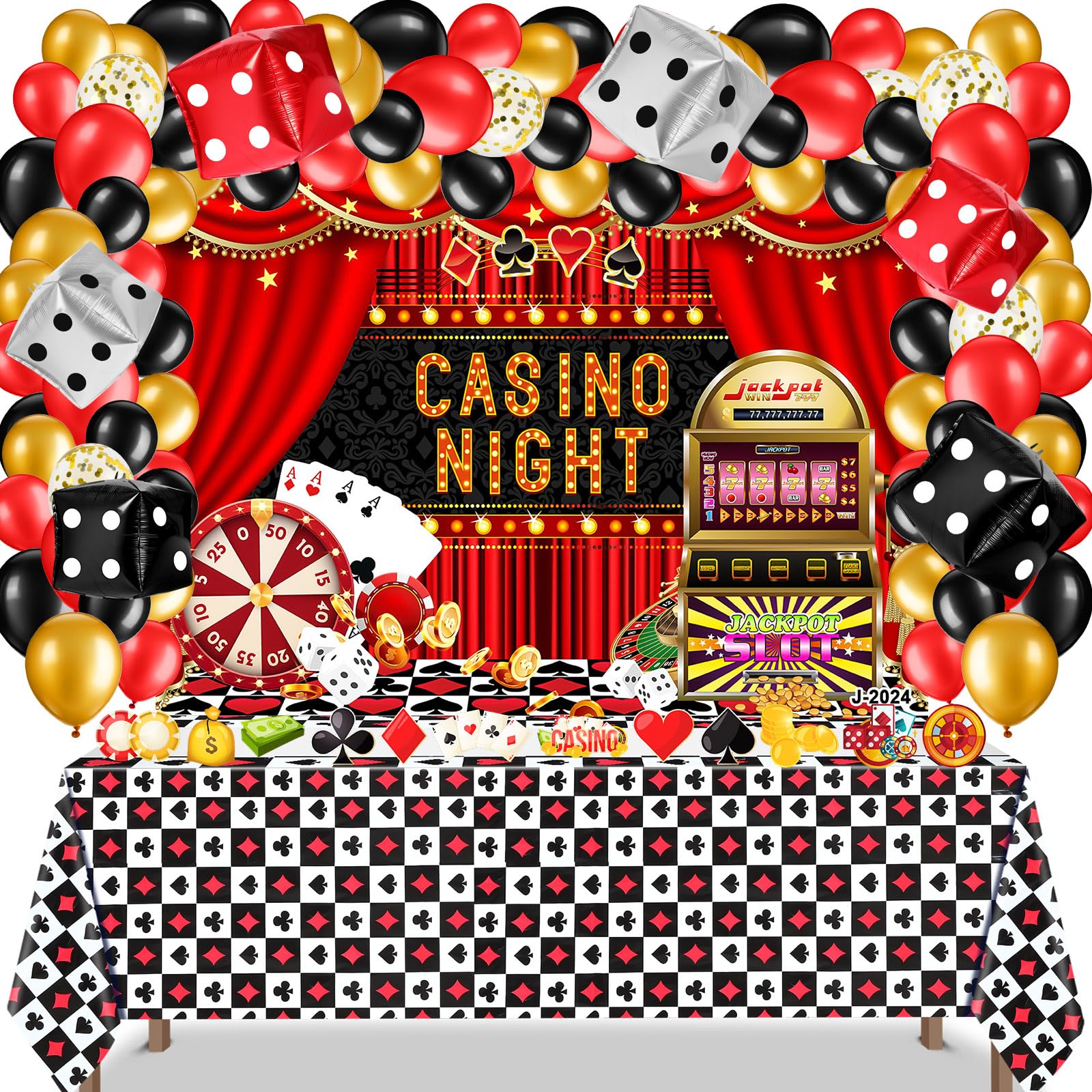Leyndo Kit de guirnalda de arco de globos de casino, 123 piezas de decoración de fiesta temática de casino, globos de dados negros