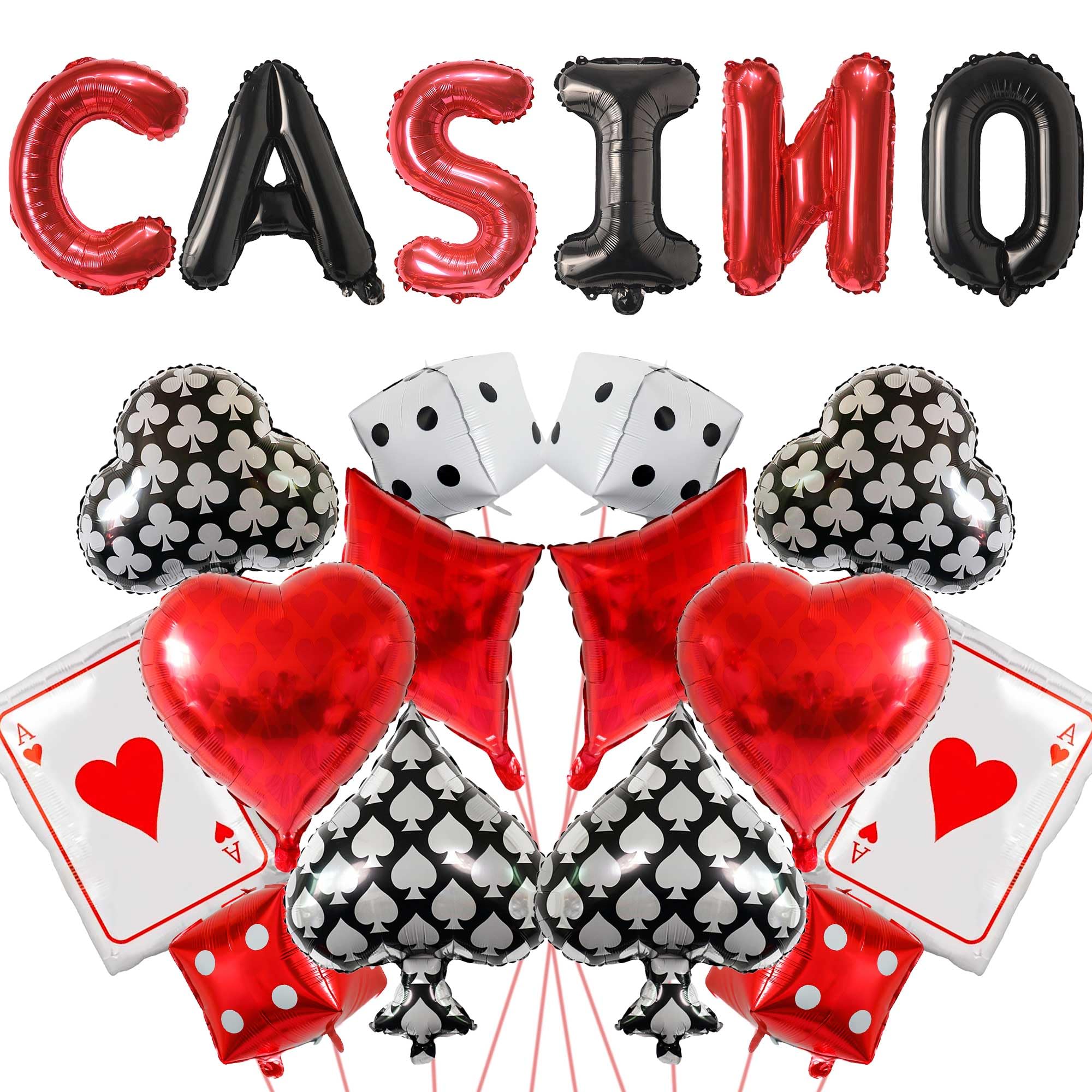 20 globos de fiesta temática de casino para jugar a las cartas, globos de aluminio, decoraciones de fiesta de casino con corazones