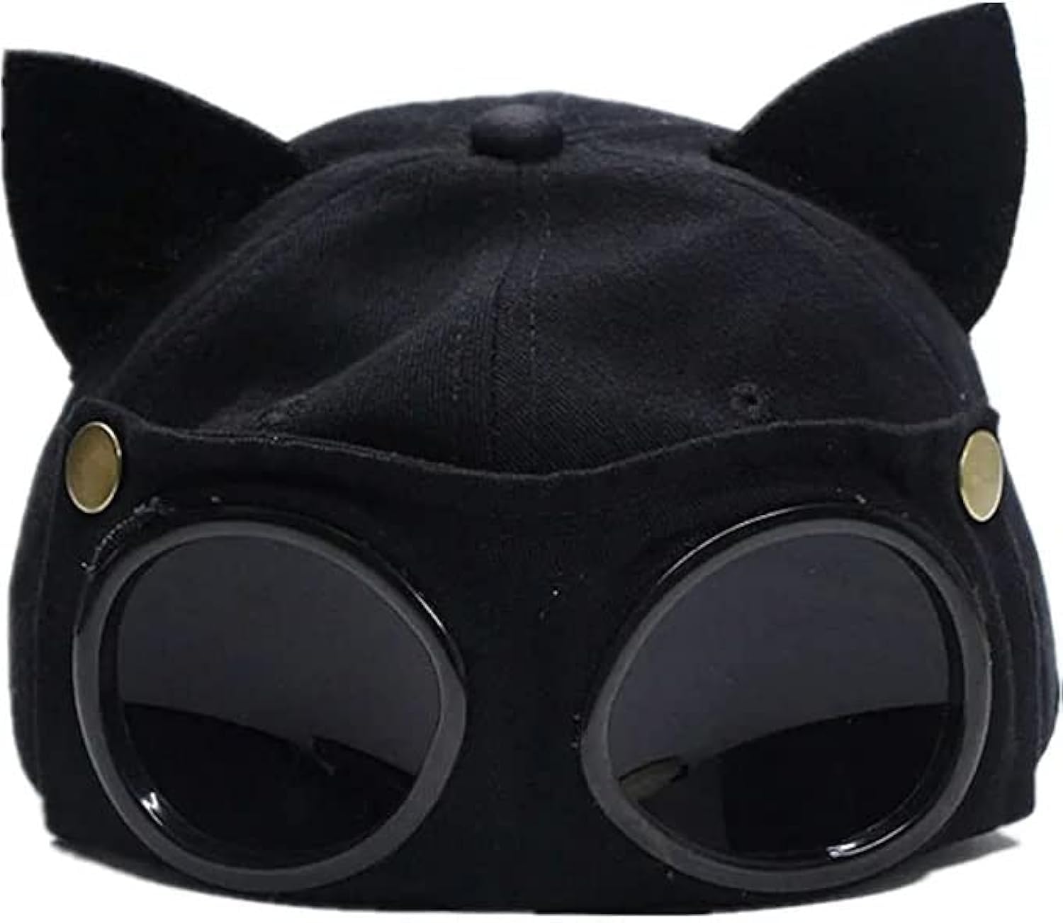 Sombrero de aviador retro con orejas de gato, gafas de sol, gorra de béisbol, máscara de hip hop, color negro, Negro –