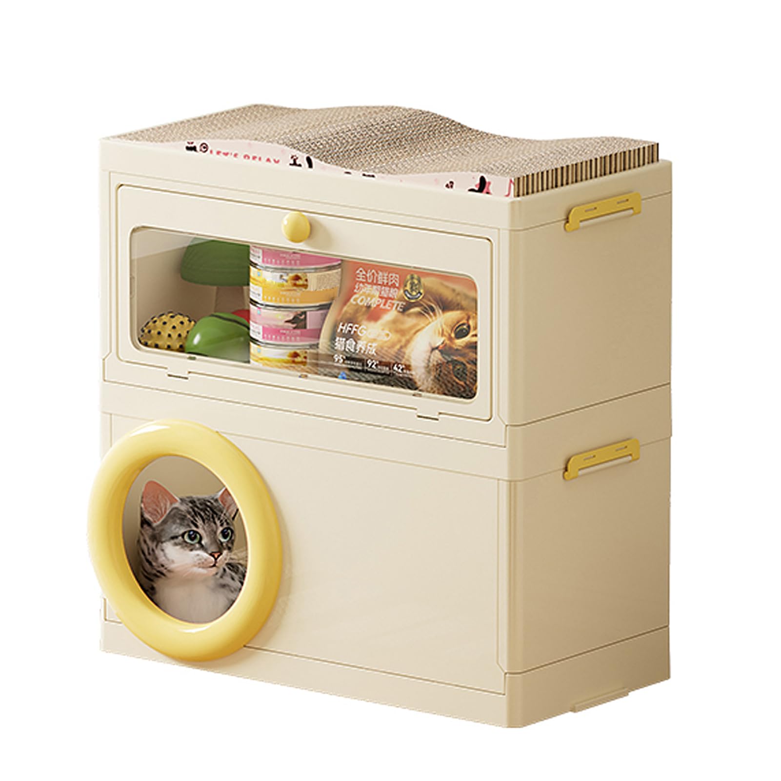Cama grande para gatos con gabinete de almacenamiento de suministros para mascotas y almohadilla para rascar, 23.6 x 11.8 x 23.4 p