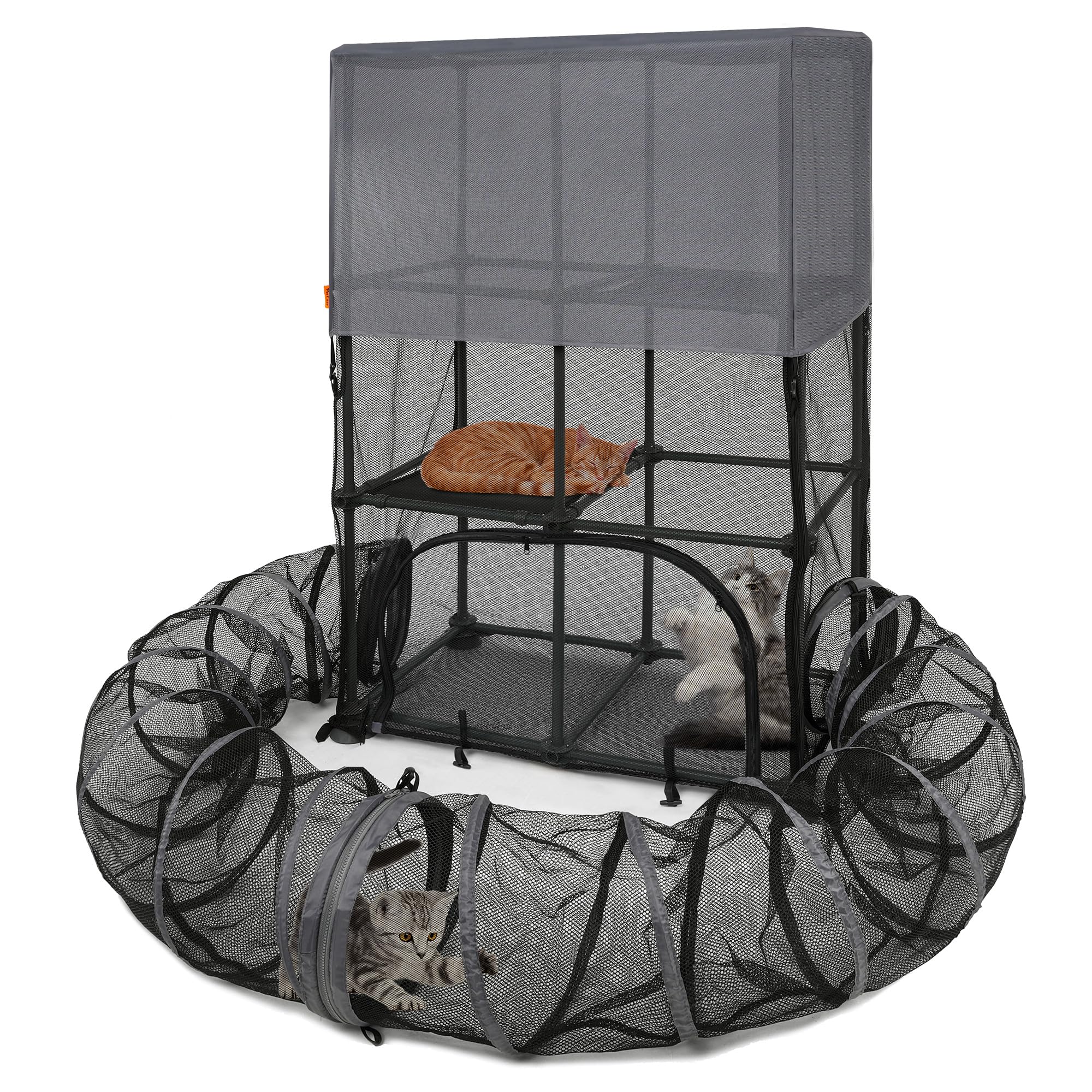 Catio – Recinto para gatos y animales pequeños, corralito para mascotas con túnel extraíble para mascotas para uso en interiores y